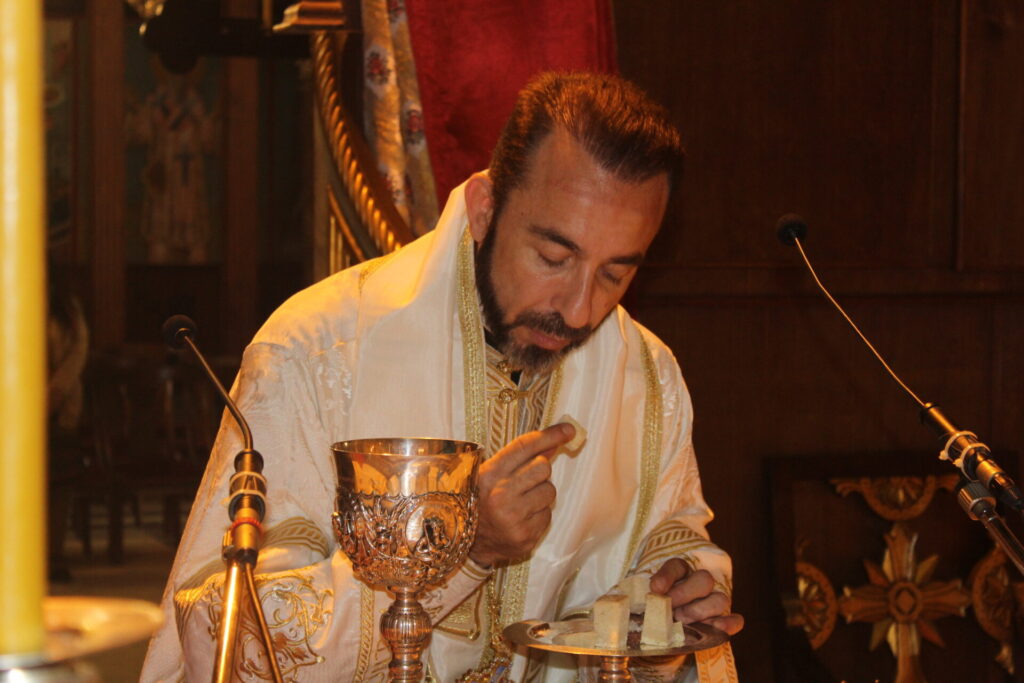 Χοροστάτησε ο Μακαριώτατος του Αλεξανδρινού Θρόνου Θεόδωρος Β΄, το εκκλησιαστικό τελετουργικό υπηρέτησε ο Σεβασμιότατος Μητροπολίτης Ναυκράτιδος και Αρχιγραμματέας της Ιεράς Συνόδου, κ. Παντελεήμων, ενώ αρωγοί συμπροσευχόμενοι μαζί με τον Σεβασμιότατο Μητροπολίτη Ταμιάθεως και ιερουργού της Μονής του Αγίου Σάββα, κου. Γερμανού ήταν ο Σεβασμιότατος Μητροπολίτης Γέρων Λεοντουπόλεως κ. Γαβριήλ, ο Πανοσιολογιότατος Αρχιμανδρίτης και Σχολάρχης της Ιερατικής Σχολής του Πατριαρχείου κ. Ισαάκ, με τους αφοσιωμένους μαθητές του. Έψαλλε ο Αιδεσιμολογιότατος Πρωτοπρεσβύτερος π. Πάνος Γαζής, με το ρωμαλέο και στεντόρειο ηχόχρωμά του να γεμίζει τις ψυχές μας.