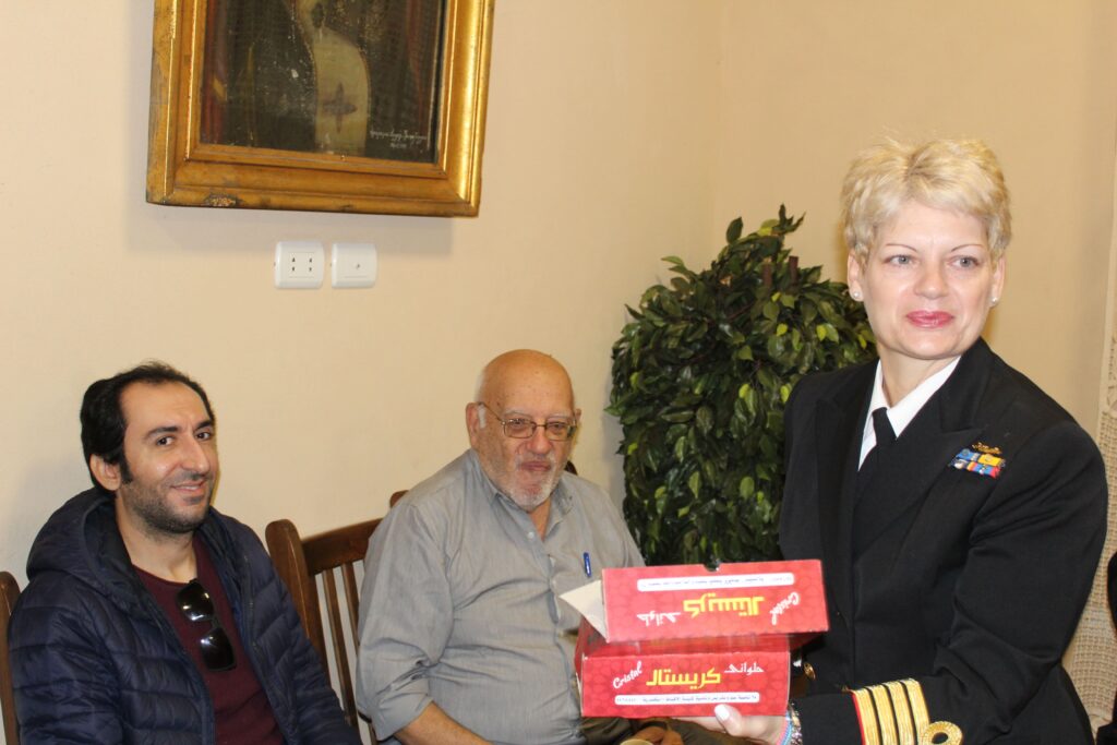Ανήμερα της εορτής του Αγίου Νικολάου, προστάτη των ναυτικών, δεν θα μπορούσε να λείπει ο Πλοίαρχος και Σύνδεσμος του Πολεμικού μας Ναυτικού με το Αιγυπτιακό κ. Κωνσταντίνος Βαρουξής με την σύζυγό του επίσης Πλοίαρχο κα. Αγγελική Βαρουξή. Στο πρόσωπό τους εκπροσωπήθηκαν όλοι οι Έλληνες της ναυτοσύνης, που όταν έπιαναν λιμάνι στην Αλεξάνδρεια ξεχώριζαν από μακριά τον τρούλο της εκκλησίας και άναβαν κεράκι στον Άγιο Νικόλαο.