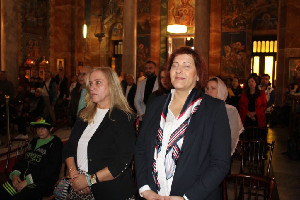 Στον Ιερό Ναό του Ευαγγελισμού παρευρέθησαν ο Πρέσβυς της Ελλάδας στο Κάϊρο κ. Νικόλαος Παπαγεωργίου, ο Γενικός Πρόξενος της Ελλάδας στην Αλεξάνδρεια – και συνάμα Πρέσβυς στο αξίωμα κ. Αθανάσιος Κοτσιώνης – μετά της συζύγου του Ιωάννας, ο Πρέσβυς της Ουκρανίας στο Κάϊρο, ο νεοεκλεγείς Πρόεδρος της Ελληνικής Κοινότητος Αλεξανδρείας κ. Ανδρέας Βαφειάδης, ο Πρόεδρος της Ελληνικής Κοινότητος Καϊρου κ. Χρήστος Καβαλής, ο Οικονομικός Επόπτης της Ελληνικής Κοινότητας Αλεξανδρείας κ Εμμανουήλ Τατάκης, ο πρώην Πρόεδρος της Ελληνικής Κοινότητας Αλεξανδρείας κ. Ιωάννης Σιόκας, η κα. Μαρία Παυλίδου του Προξενείου Αλεξανδρείας και πρώην Αντιπρόεδρος Β΄ της Ελληνικής Κοινότητας Αλεξανδρείας, ο Διευθυντής της ΕΚΑ κ. Γεώργιος Μπούλος, ο Πλοίαρχος και Σύνδεσμος του Πολεμικού Ναυτικού κ. Κωνσταντίνος Βαρουξής, η Πρόεδρος του Ελληνικού Ναυτικού Ομίλου Αλεξανδρείας και του Συλλόγου Πτολεμαίος κα. Λιλίκα Θλιβίτου, η Πρόεδρος του Λυκείου Ελληνίδων κα. Αλίκη Αντωνίου, η κα. Δήμητρα Κόλλια στέλεχος του Προξενείου Αλεξανδρείας, οι διευθυντές των Ελληνικών Σχολείων της Ελληνικής Κοινότητας, ο Πρόεδρος της Αραβορθοδόξου Κοινότητας Αλεξανδρείας, Πρόεδροι ιστορικών Ελληνικών Οργανισμών, Συλλόγων και Σωματείων στην Νειλοχώρα, ο Πανοσιολογιότατος Αρχιμανδρίτης και Σχολάρχης της Πατριαρχικής Σχολής κ. Ισαάκ, Κληρικοί της Ιεράς Αρχιεπισκοπής Αλεξανδρείας και πλήθος Χριστιανών εξ Αιγύπτου, Ελλάδος και Ουκρανίας. Έψαλλε ο Αιδεσιμολογιώτατος Πρωτοπρεσβύτερος Π. Πάνος Γαζής μαζί με ιεροψάλτες της Εκκλησίας του Καΐρου και μαθητές της Ιερατικής Σχολής.