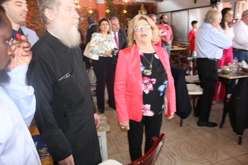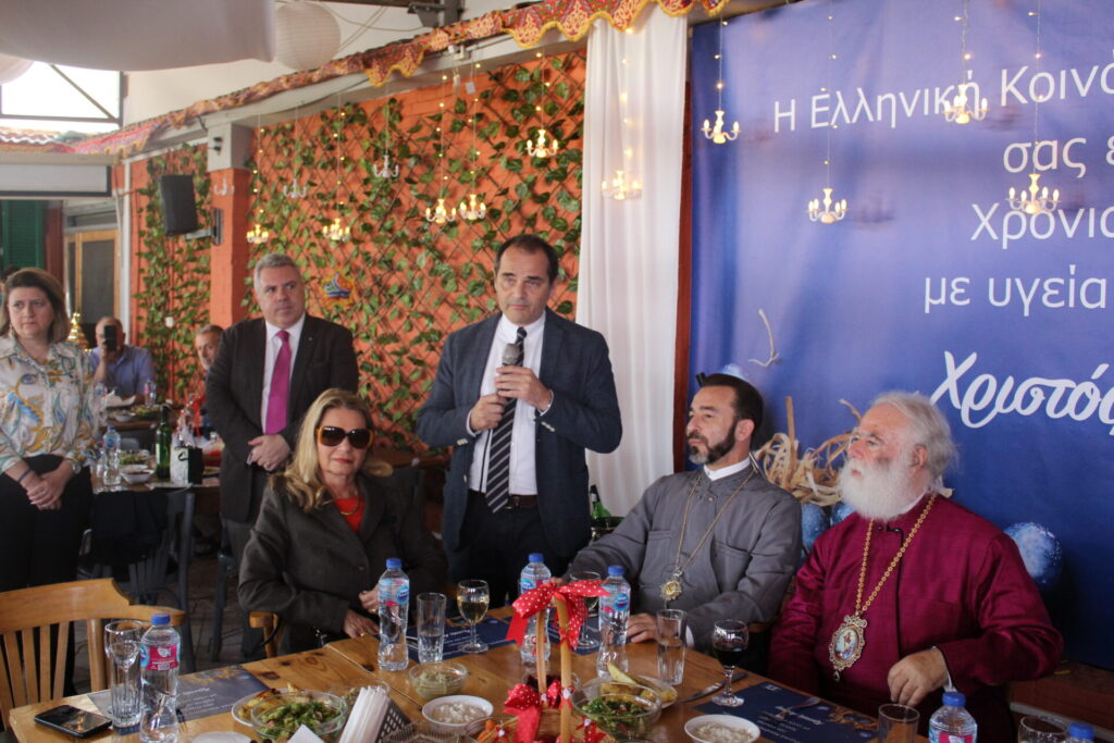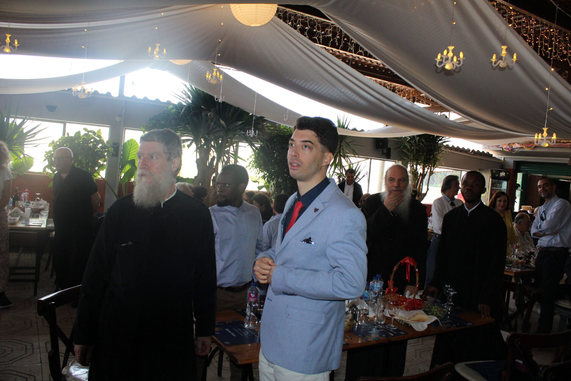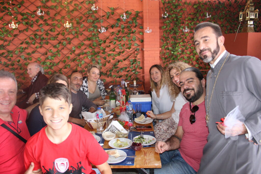 Ο Μακαριώτατος πήρε το λόγο και ευχαρίστησε τον Πρόεδρο κ. Βαφειάδη, για το πασχαλινό τραπέζι που προσέφερε η Κοινότητα σ αυτούς τους δύσκολους καιρούς κι ευλόγησε το γεύμα. Συνεχάρη τους ομοτράπεζούς του, τον Πλοίαρχο κ. Κωνσταντίνο Βαρουξή που συνοδευόταν από τη σύζυγό του Αγγελική, την Πρόεδρο του ΕΝΟΑ και του Πτολεμαίου κα. Λιλίκα Θλιβίτου, τον κ. Βασίλειο Ζουέ και τη σύζυγό του κα. Βίλλυ Πολίτη Γενική Γραμματέα της Κοινότητας Καίρου. Παρευρέθηκαν επίσης ο Α΄ Αντιπρόεδρος κ. Ιωάννης Παπαδόπουλος με την οικογένειά του, ο Οικονομικός Επόπτης κ. Εμμανουήλ Τατάκης με τη σύζυγό του, ο Αναπληρωτής Οικονομικού Επόπτη κ. Ευάγγελος Νεαμονίτης και ο διευθυντής κ. Γεώργιος Μπούλος με τη σύζυγό του Αλίν.
