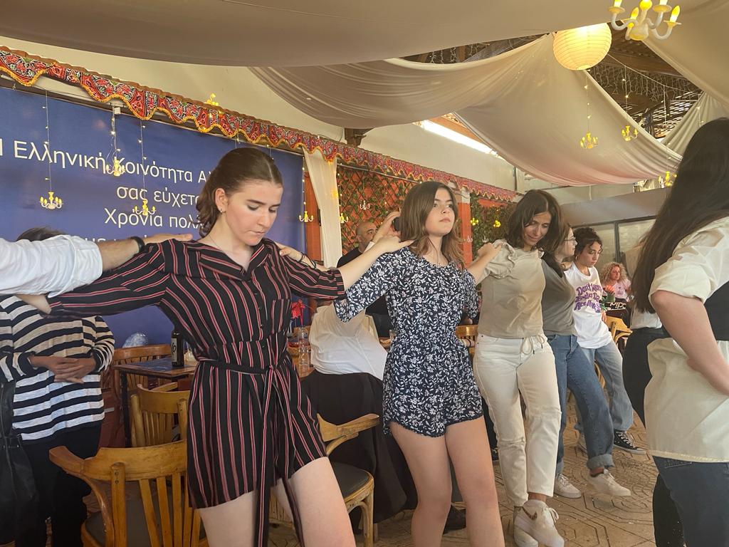 Κι όταν ο Πρόεδρος της Κοινότητας πήρε το μικρόφωνο και προέτρεψε τον κόσμο να χορέψει και να ευχαριστηθεί την ημέρα της γιορτής, η νεολαία των ελληνικών σχολείων, ικανοποίησε με τις χορευτικές της φιγούρες και τον ποιο απαιτητικό πάροικο. Αυτό ήταν! Σειρά πήραν οι ενήλικες, προεξάρχοντος του κ. Βαφειάδη, ο οποίος χόρεψε όμορφα το δικό του ζεϊμπέκικο υπό τα χειροκροτήματα των παροίκων και ακολούθησαν σχεδόν όλοι, που τελικά το γλέντησαν για τα καλά, με ζεϊμπέκικα, νησιώτικα, ανατολίτικα, συρτάκι, χασάπικο και ότι αγαπούσε η όρεξη του καθενός.