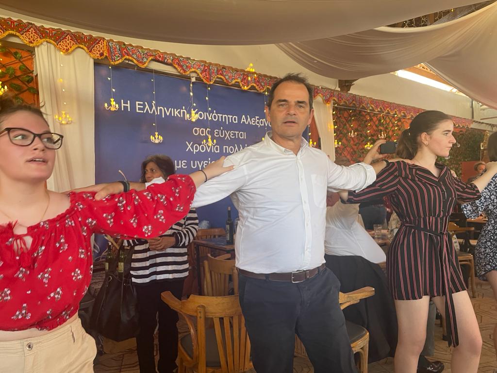 Εξαίρετος και ο αγαπητός σε όλους μας, εκπαιδευτικός και ιερέας κ. Πάνος Γαζής, που με τις στροφές του απέδειξε πώς το θρησκευτικό μαζί με το ελληνικό στοιχείο, είναι βαθιά ριζωμένα μέσα του. Όλοι συζητούσαν πώς αυτός είναι ένας επιπλέον λόγος, που απαιτείται να παραμείνει στην Αλεξάνδρεια ο επιτυχημένος Πάνος Γαζής μαζί με την εκπαιδευτικό σύζυγό του Ελένη και τα πέντε παιδιά τους.