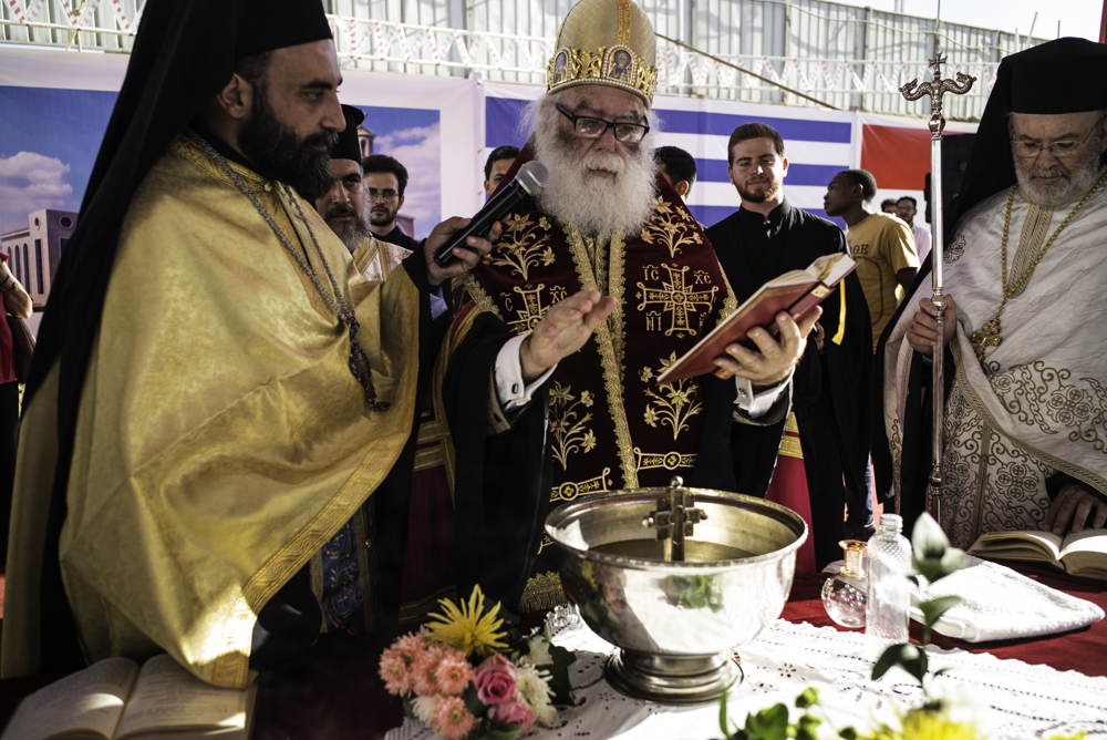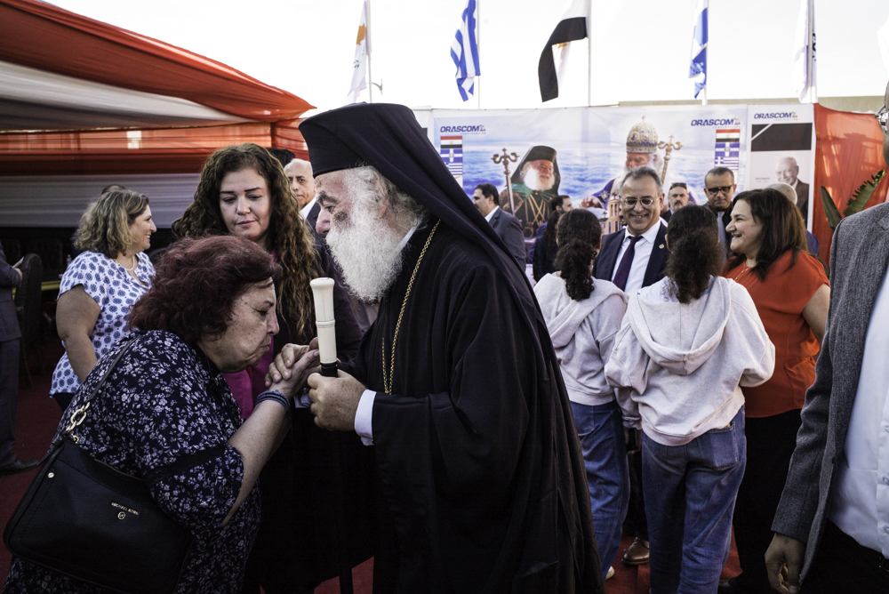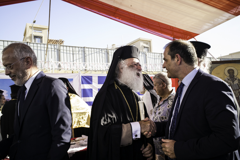 Τιμώντας όπως πάντα το πρωτόκολλο και την εθιμοτυπία, ο Μακαριώτατος χαιρέτησε τους επίσημους εκπροσώπους της Ελλάδας της Κύπρου, της Ελληνικής Κοινότητας Καΐρου και Αλεξανδρείας, τους Χριστιανούς Αραβόφωνους τους εκπροσώπους της Οράσκομ και της Αιγυπτιακής πολιτείας και ξεκίνησε τον Αγιασμό.