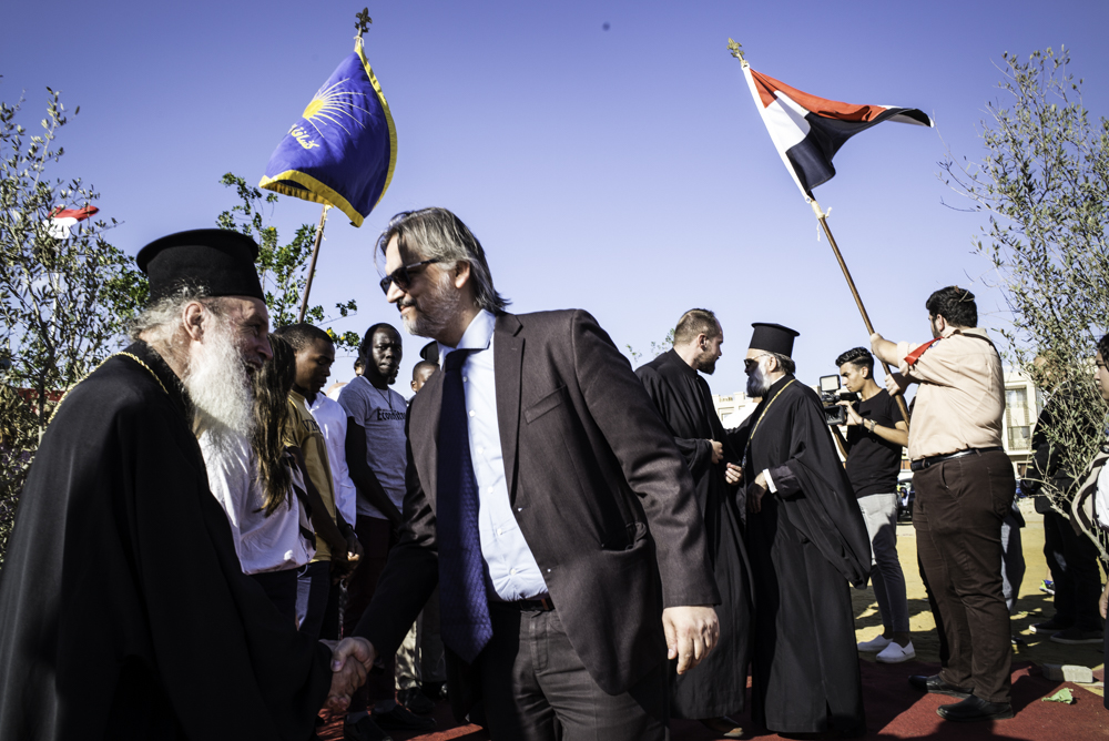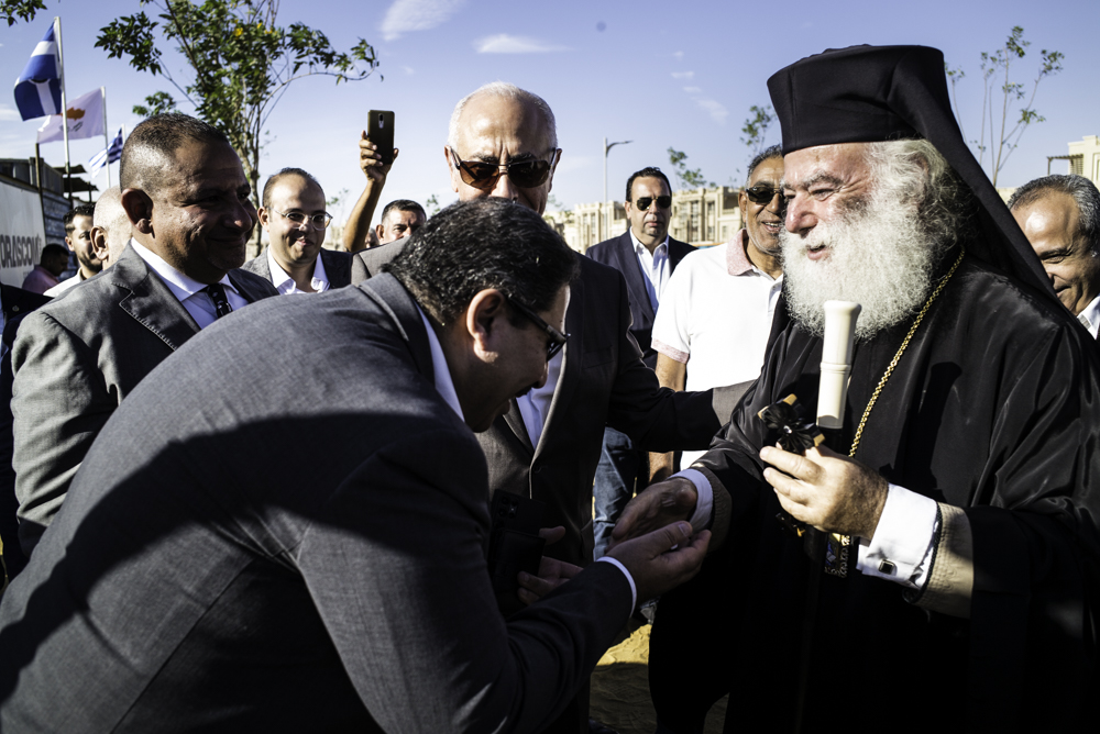 Ακολούθως ο Ιεράρχης της Αφρικανικής ηπείρου και του Ελληνισμού, έριξε το βλέμμα του στη μακέτα του έργου και συνέχισε το λόγο του: «Ξεκινάμε με το σπίτι το Θεού και δίπλα θα είναι αυτές οι αίθουσες που θα εξυπηρετούν τους ανθρώπους που θα έρχονται στο πνευματικό αυτό κέντρο της Ορθοδοξίας. Αυτό το όνειρό μου δεν θα γινόταν πραγματικότητα αν δεν υπήρχε ο ένας, ο μεγάλος, που είναι ο Πρόεδρος της Αιγύπτου Αμπντέλ Φατάχ Ελ Σίσι. Γονάτισα και παρακάλεσα τον Θεό να μου στείλει τον άγγελό του για να πραγματοποιηθεί αυτό το έργο. Και ο Θεός με άκουσε και έστειλε τον φιλάνθρωπο και μεγάλο μας φίλο κ. Ναγκίμπ Σαγουίρις, τον οποίον ευχαριστώ μέσα από την καρδιά μου. Θέλω να ευχαριστήσω όλους τους ανθρώπους της Οράσκομ που συνέλαβαν τα όνειρά μου, δούλεψαν για να φτάσουμε βαθιά στην γη και από αύριο να ξεκινήσει αυτό το μεγάλο έργο. Αυτό το έργο παιδιά μου, είναι δικό σας. Εγώ ήρθα όπως όλοι οι Πατριάρχες που ερχόμαστε και φεύγουμε. Τα έργα όμως αυτά θα μείνουν».