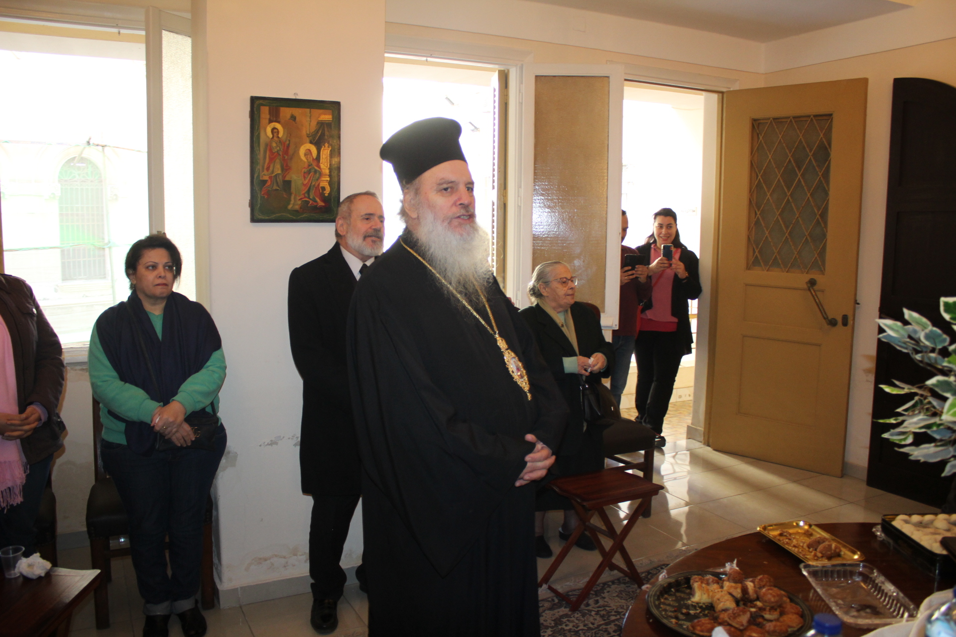 Στη συνέχεια ο Μακαριώτατος συνοδευόμενος από τον Γενικό Πρόξενο κ. Ιωάννη Πυργάκη και τη σύζυγό του Κατερίνα, τον Πρόεδρο της Ελληνικής Κοινότητας Αλεξανδρείας κ. Ανδρέα Βαφειάδη και τον Οικονομικό Επόπτη της ΕΚΑ κ. Εμμανουήλ Τατάκη, κατευθύνθηκαν προς τον Οίκο Ευγηρίας ΜΑΝΝΑ της Ελληνικής Κοινότητας.