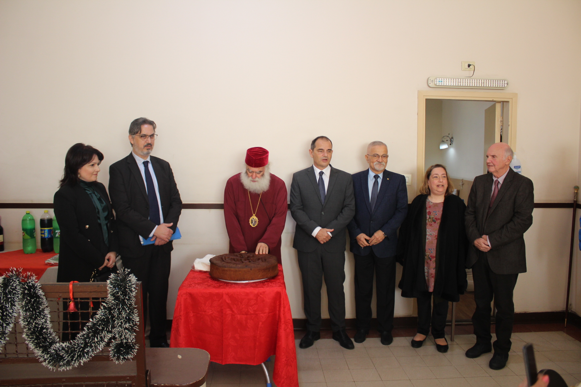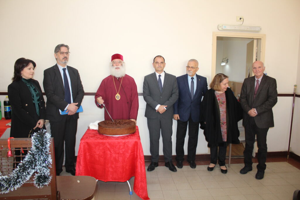 Ακολούθως ο Μακαριώτατος ευλόγησε την πίτα του Γηροκομείου, ενώ ο Πρόεδρος της Ελληνικής Κοινότητας Αλεξανδρείας κ. Ανδρέας Βαφειάδης, ο Γενικός Πρόξενος κ. Ιωάννης Πυργάκης και ο Οικονομικός Επόπτης της ΕΚΑ κ. Εμμανουήλ Τατάκης, έκοψαν κατά σειρά την πίτα και μοιράσθηκαν τα κομμάτια σε όλους τους τροφίμους και εργαζόμενους του ΜΑΝΝΑ. Εδώ η τύχη ήταν με το μέρος του ιατρού κ. Μέντχατ Σόκαρ που χαρούμενος ύψωσε το φλουρί και εισέπραξε το χειροκρότημα των παρευρισκομένων.