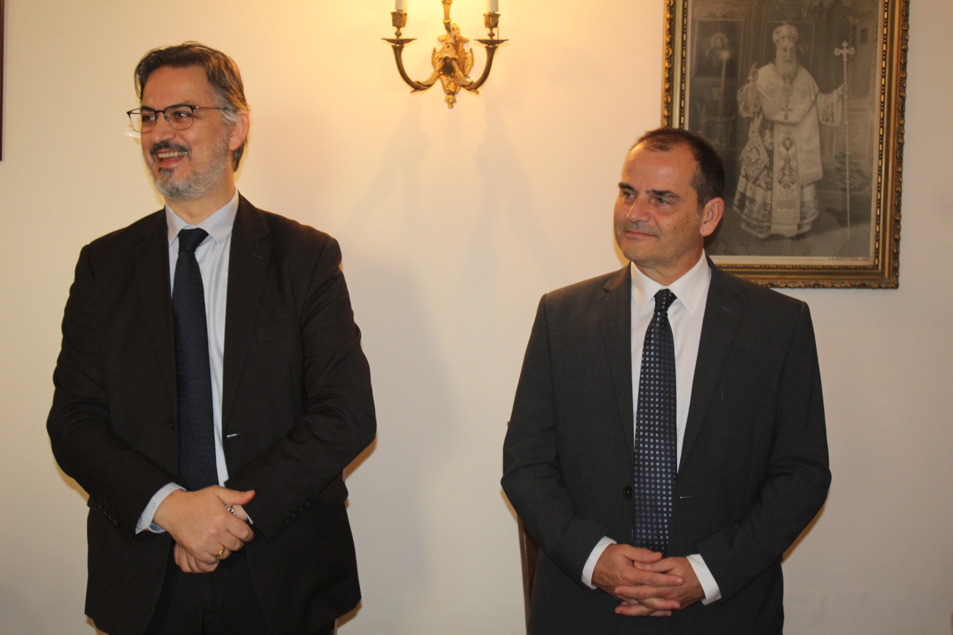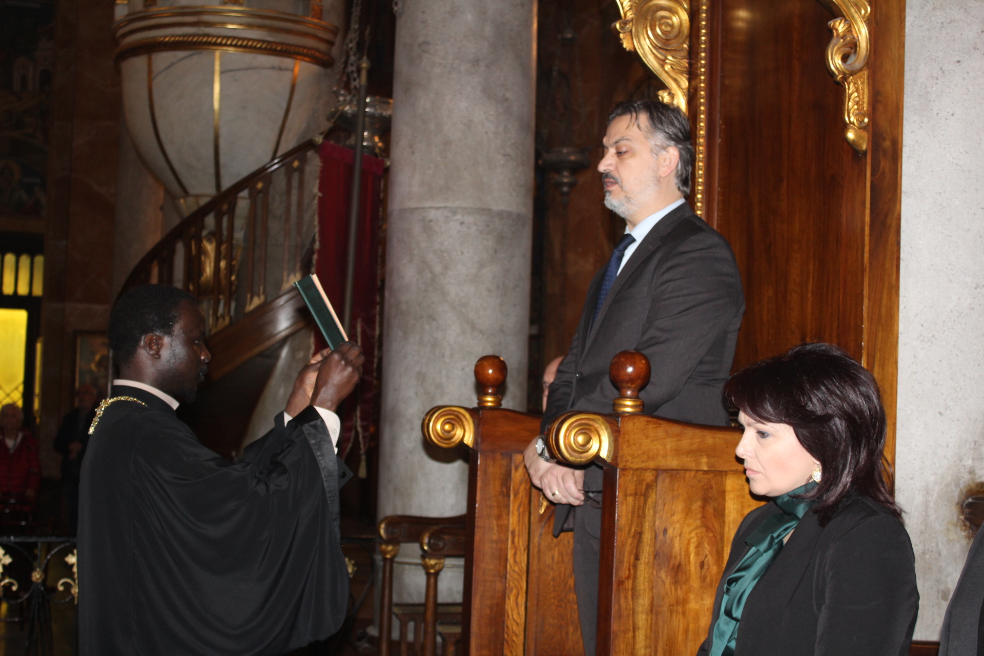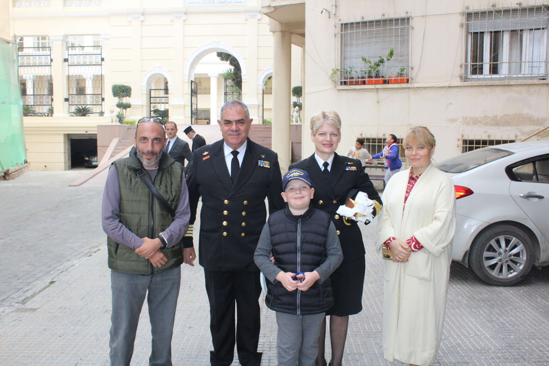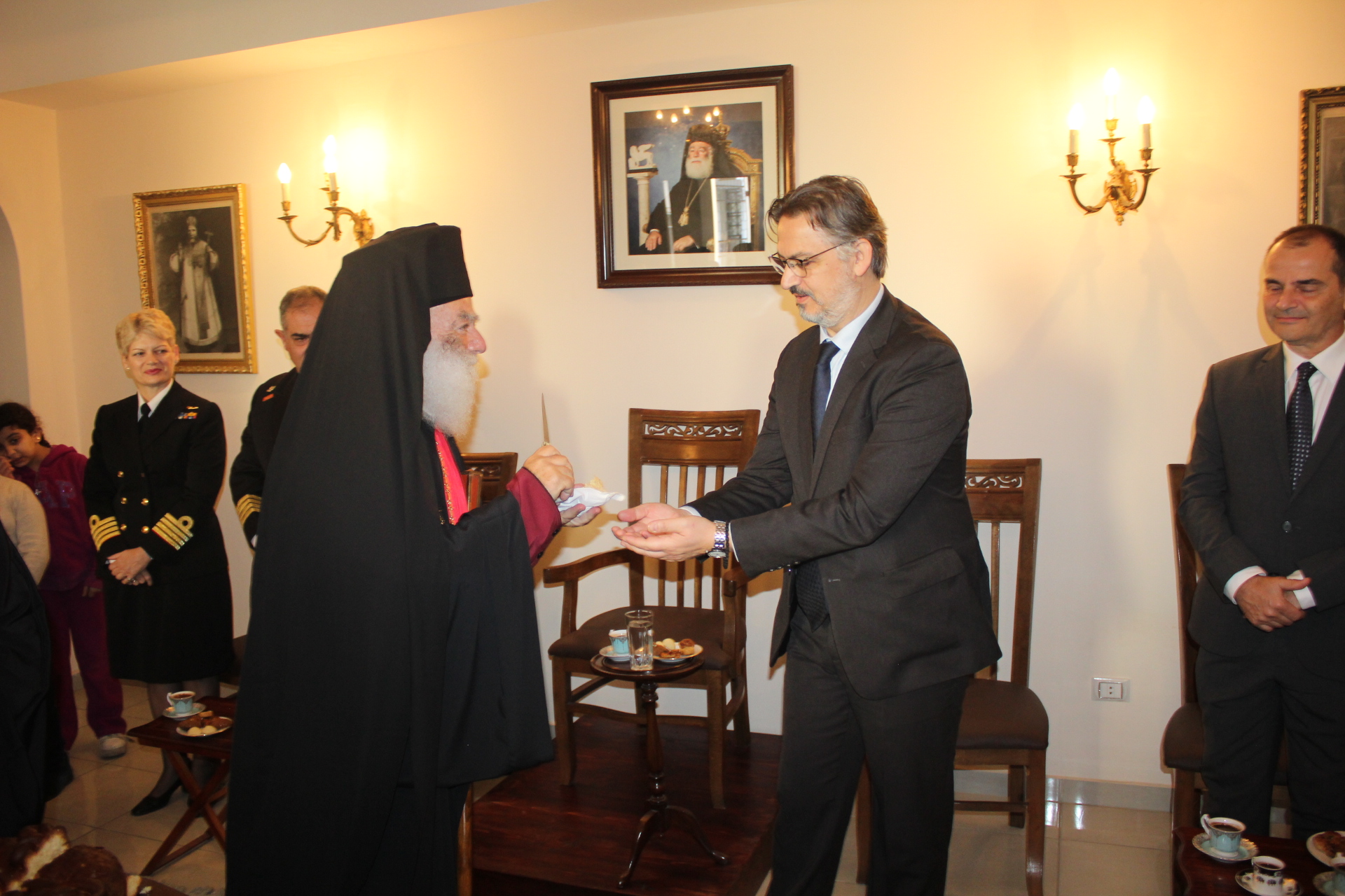 Εκ των θεσμικών εκπροσώπων παρευρέθησαν ο Γενικός Πρόξενος της Ελλάδας στην Αλεξάνδρεια κ. Ιωάννης Πυργάκης μετά της συζύγου του Κατερίνα, ο Πρόεδρος της Ελληνικής Κοινότητας Αλεξανδρείας κ. Ανδρέας Βαφειάδης, ο Σύνδεσμος του Π/Ν της Ελλάδας στην Αλεξάνδρεια, Πλοίαρχος κ. Κωνσταντίνος Βαρουξής μετά της συζύγου του, επίσης Πλοιάρχου Αγγελικής και ο Οικονομικός Επόπτης της Ελληνικής Κοινότητας Αλεξανδρείας κ. Εμμανουήλ Τατάκης.