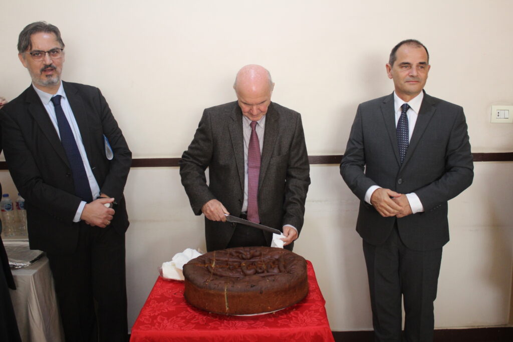 Μέσα σε μια όμορφη ατμόσφαιρα ο κ. Βαφειάδης έκοψε την Πρωτοχρονιάτικη Κοινοτική Πίτα ευχόμενος προς τον Μακαριώτατο και όλους τους παρευρισκομένους το 2024 να είναι τυχερό και ευτυχές για όλο τον κόσμο, ενώ συνέχισε το κόψιμο και ο Οικονομικός Επόπτης της ΕΚΑ κ. Εμμανουήλ Τατάκης. Ο τυχερός βρέθηκε αμέσως και ήταν μια οικογένεια επισκεπτών στην Αλεξάνδρεια γεγονός που χαροποίησε άπαντες.