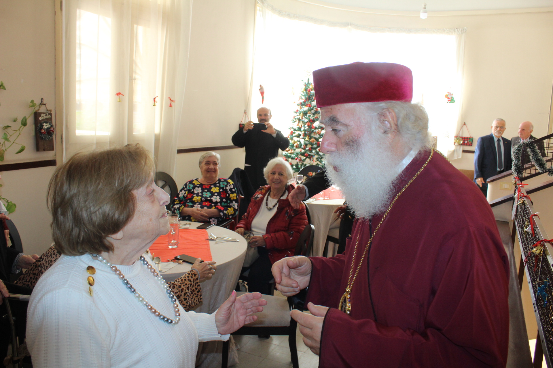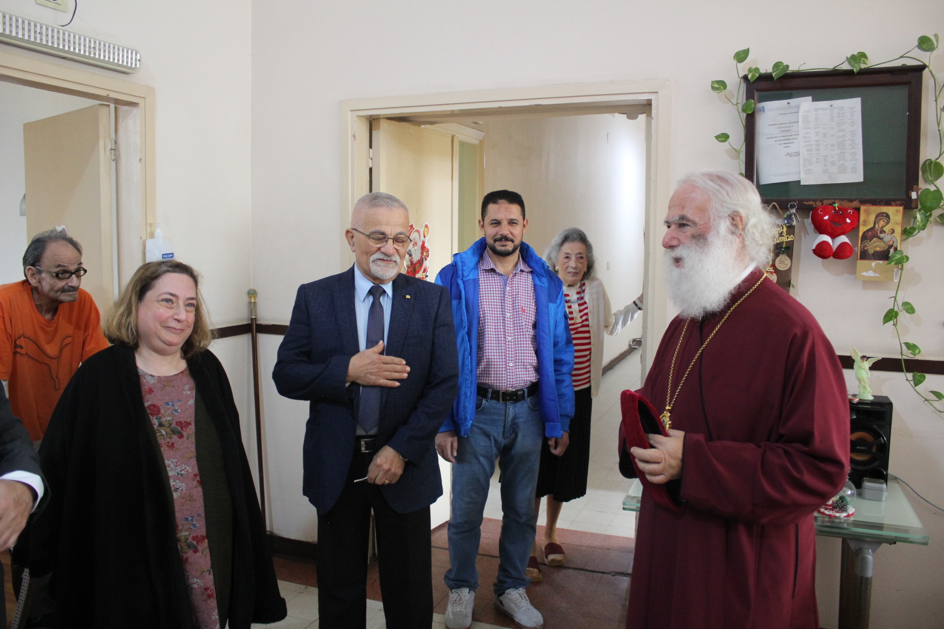 Εκεί τους υποδέχθηκε η Διευθύντρια κα. Αγγελική Νιάρου, ο ιατρός κ. Μέντχατ Σόκαρ και το προσωπικό του Γηροκομείου. Άπαντες οι επισκέπτες προεξάρχοντος του Πατριάρχου εισήλθαν σε όλα τα δωμάτια και συνομίλησαν με τους διαβιούντες συμπαροίκους μας. Τους ευχήθηκαν Καλή Χρονιά ο δε Μακαριώτατος συνομίλησε με όλους αποκαλώντας τους με τα μικρά τους ονόματα, καθώς τους γνωρίζει έναν προς έναν, γεγονός που χαροποίησε τους τροφίμους, ο δε Σεβασμιώτατος Μητροπολίτης Πηλουσίου κ. Νάρκισσος, Πατριαρχικός Επίτροπος, εναπόθεσε με διακριτικότητα προς όλους το πρωτοχρονιάτικο δώρο τους.