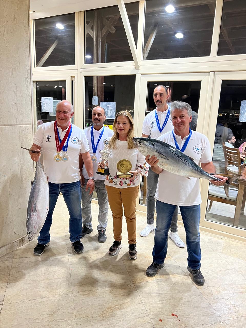 Η ανωτέρω έμπειρη ομάδα κατέκτησε τη δεύτερη θέση με ένα ψάρι 10 κιλών 300 γραμμαρίων που έπιασε ο Ηλίας Σακελλάρης με τη μέθοδο συρτή, ενώ το πρώτο μεγαλύτερο ψάρι μια παλαμίδα 10 κιλών 800 γραμμαρίων «αιχμαλώτισε» ο Γιάννης Κόντης με τη μέθοδο jigging, το οποίο πρέπει να ήταν ηλικίας 12-13 χρόνων.