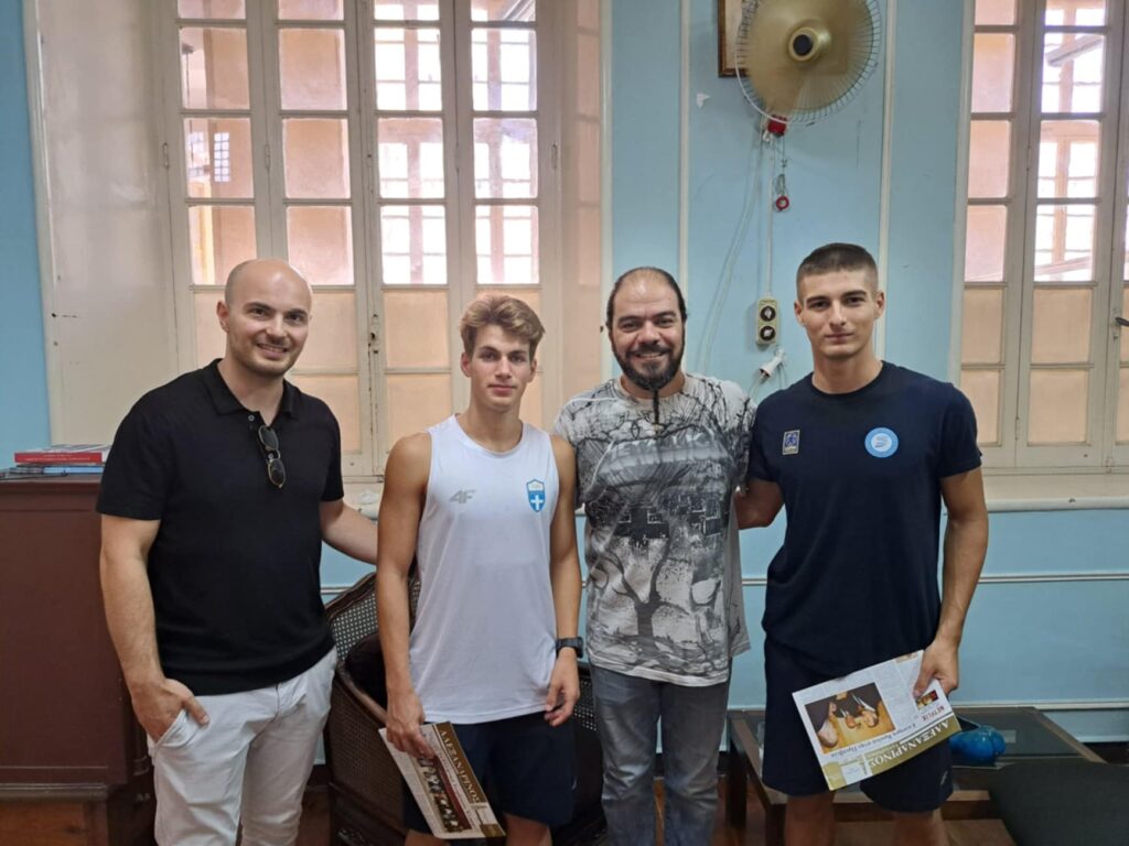 Η Ελληνική Κοινότητα Αλεξανδρείας η οποία φιλοξενεί δωρεάν στους Κοινοτικούς Ξενώνες της, τον Φίλιππο Σεχίδη και τον Νικόλαο Παπαδημητρίου, τα δύο Ελληνόπουλα που αγωνίζονται στο ανωτέρω Πρωτάθλημα στην Αίγυπτο, τα υποδέχθηκε στα Γραφεία της για μια πρώτη γνωριμία και συζήτηση μαζί τους.