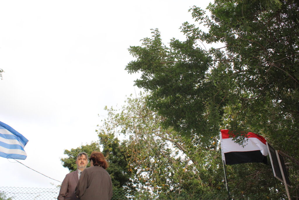 Όταν έφθασε ο Εξοχότατος κ. Αhmed Khalet, η κα Παπακώστα τον καλωσόρισε μαζί με τον κ. Πυργάκη και με την εκλεκτή συνοδεία τού Αλεξανδρινού Κυβερνήτη, κατευθύνθηκαν όλοι στο πλέον ιδανικό σημείο, έτσι ώστε να υπάρχει η κατάλληλη θέαση.
