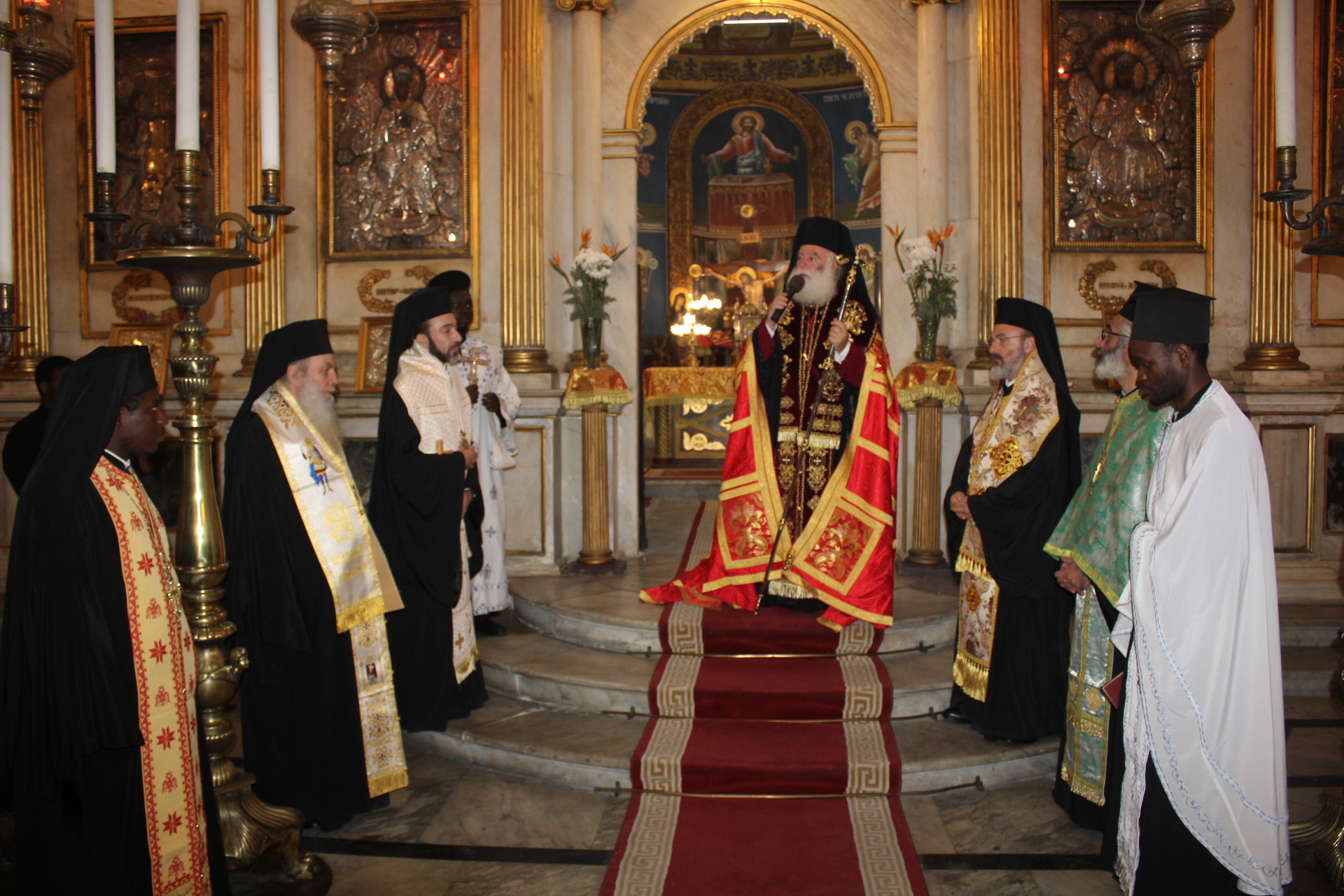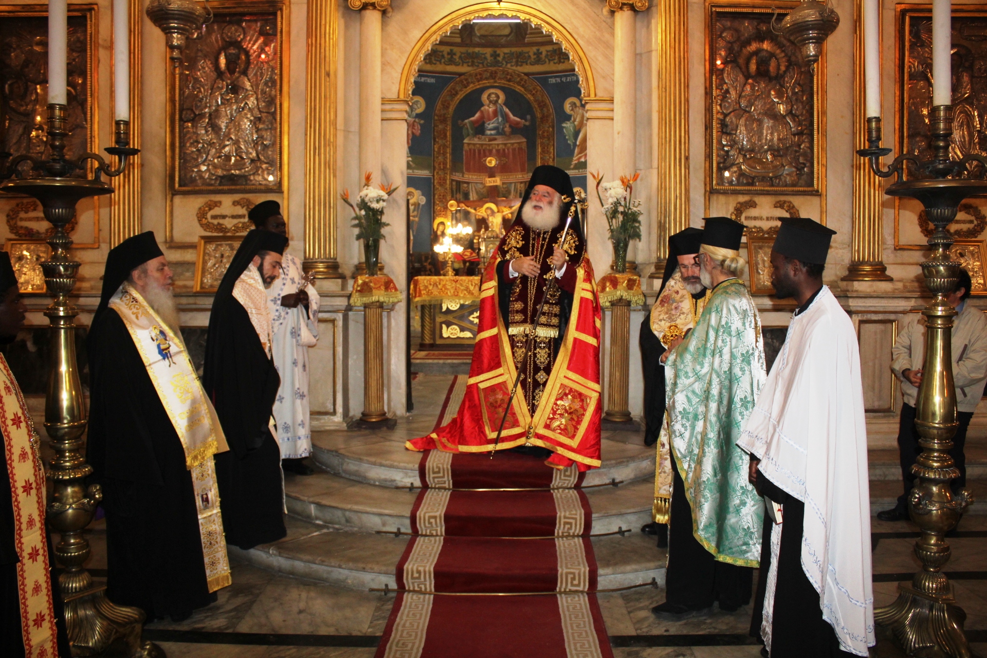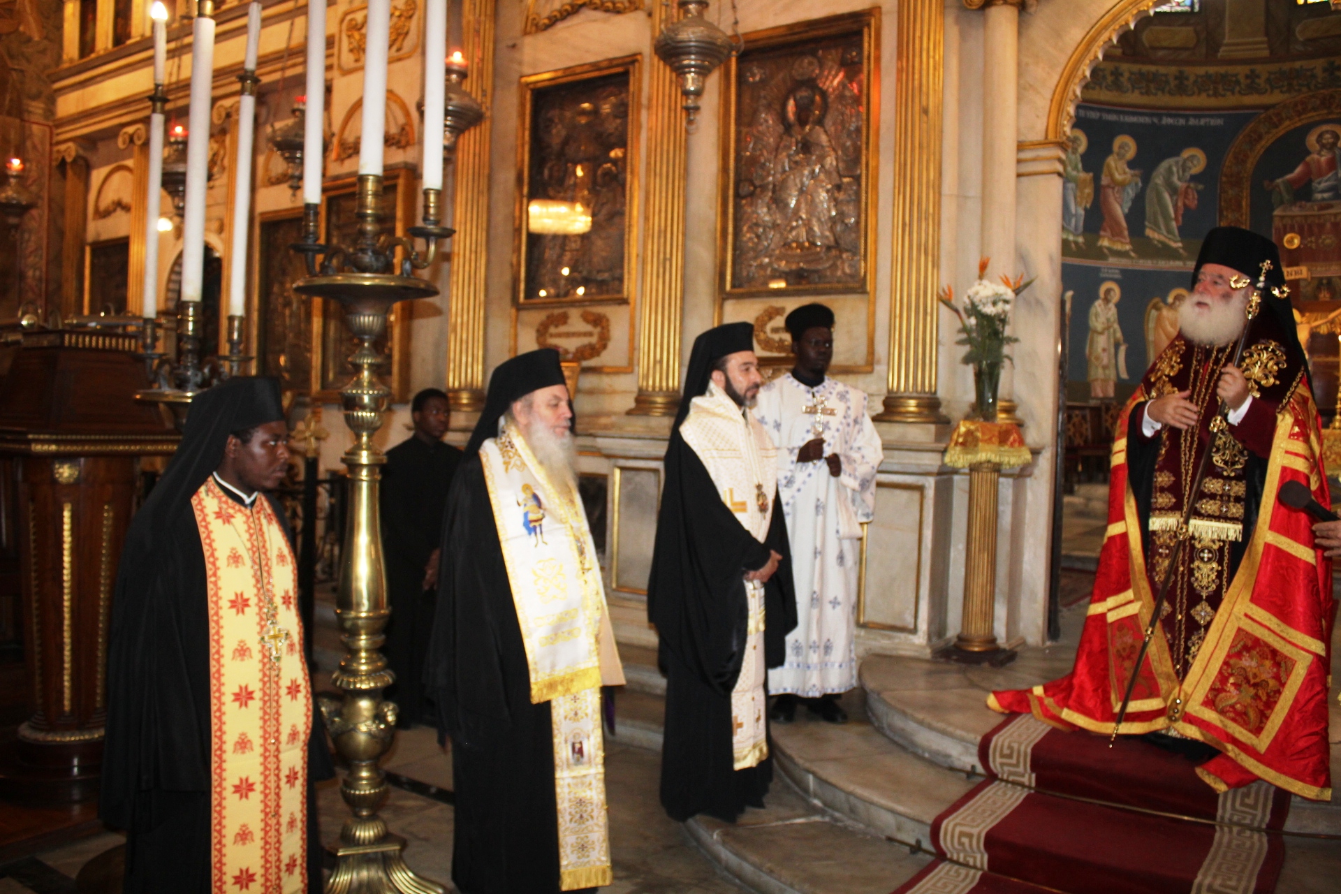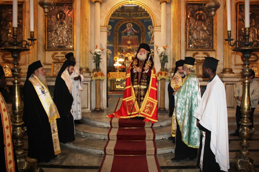 Ο Όρθρος, η Θεία Λειτουργία του Μεγάλου Βασιλείου και η ευλογία της Αγιοβασιλόπιτας, τελέσθηκαν την Πρωτοχρονιά του 2025, στον Ιερό Καθεδρικό Ναό του Ευαγγελισμού της Θεοτόκου. Ο Πατριάρχης Αλεξανδρείας και Πάσης Αφρικής Θεόδωρος Β’ προεξήρχε της Θείας Λειτουργίας, με συμπροσευχόμενους τον Σεβασμιώτατο Μητροπολίτη Πτολεμαΐδος κ. Παντελεήμονα, Αρχιγραμματέα της Ιεράς Συνόδου, τον Σεβασμιώτατο Μητροπολίτη Πηλουσίου κ. Νάρκισσο, Πατριαρχικό Επίτροπο, τον Σεβασμιώτατο Μητροπολίτη Ταμιάθεως κ. Γερμανό Προϊστάμενο της Ιεράς Μονής του Οσίου Σάββα του Ηγιασμένου και ιερείς του Πατριαρχικού Θρόνου μαζί με μαθητές της Πατριαρχικής Σχολής Άγιος Αθανάσιος.