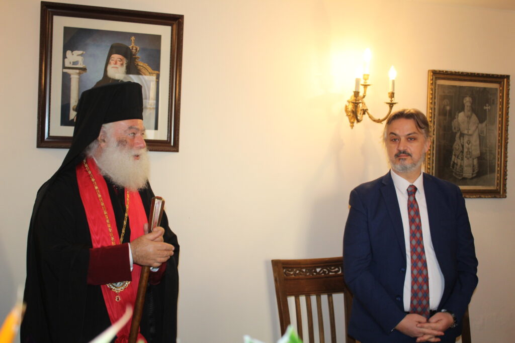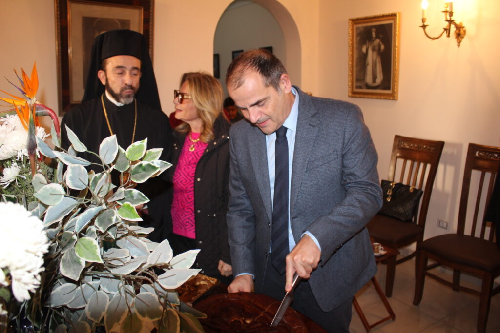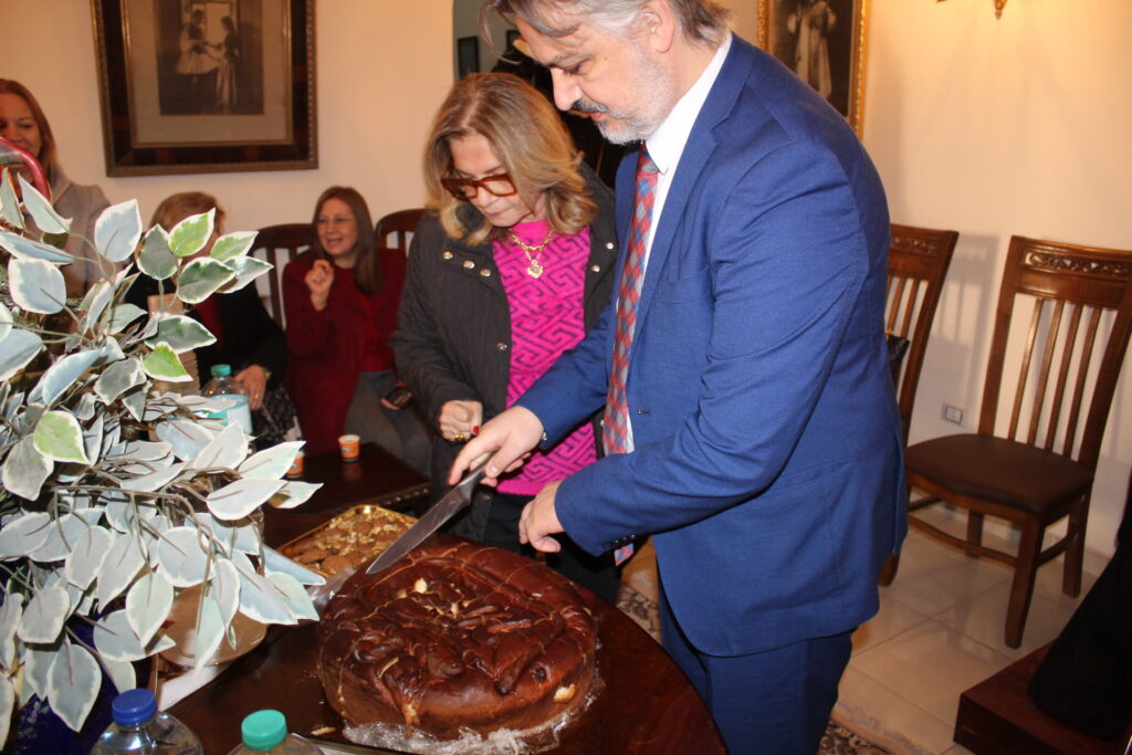 Ο Γενικός Πρόξενος της Ελλάδας στην Αλεξάνδρεια κ. Ιωάννης Πυργάκης διάβασε το Εορταστικό Μήνυμα της Προέδρου της Ελληνικής Δημοκρατίας κας Κατερίνας Σακκελαροπούλου και στη συνέχεια άπαντες κατευθύνθηκαν προς το Αρχονταρίκι του Ναού, όπου εκεί ο Πατριάρχης έκοψε την Αγιοβασιλόπιτα και ακολούθως ως συνηθίζει προσέφερε το μαχαίρι να κόψουν την πίτα ο Γενικός Πρόξενος Αλεξανδρείας, ο Πρόεδρος της Ελληνικής Κοινότητας και η Πρόεδρος του ΕΝΟΑ και του Πτολεμαίου Α΄. Το φλουρί έτυχε σε μαθητή της Ιερατικής Σχολής και όλοι ευχήθηκαν ο ένας προς τον άλλον τα χρόνια πολλά και την καλή χρονιά.