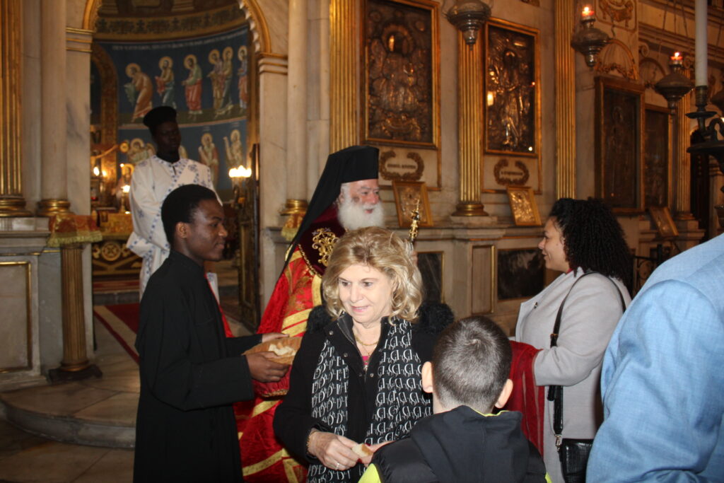 Παρόντες ακόμη, πιστοί Αιγυπτιώτες, στελέχη του Προξενείου και εκπαιδευτικοί, οι οποίοι με κατάνυξη και την αισιοδοξία της πρώτης ημέρας του νέου χρόνου, προσέδωσαν τον εορταστικό τόνο στην Θεία Λειτουργία.
