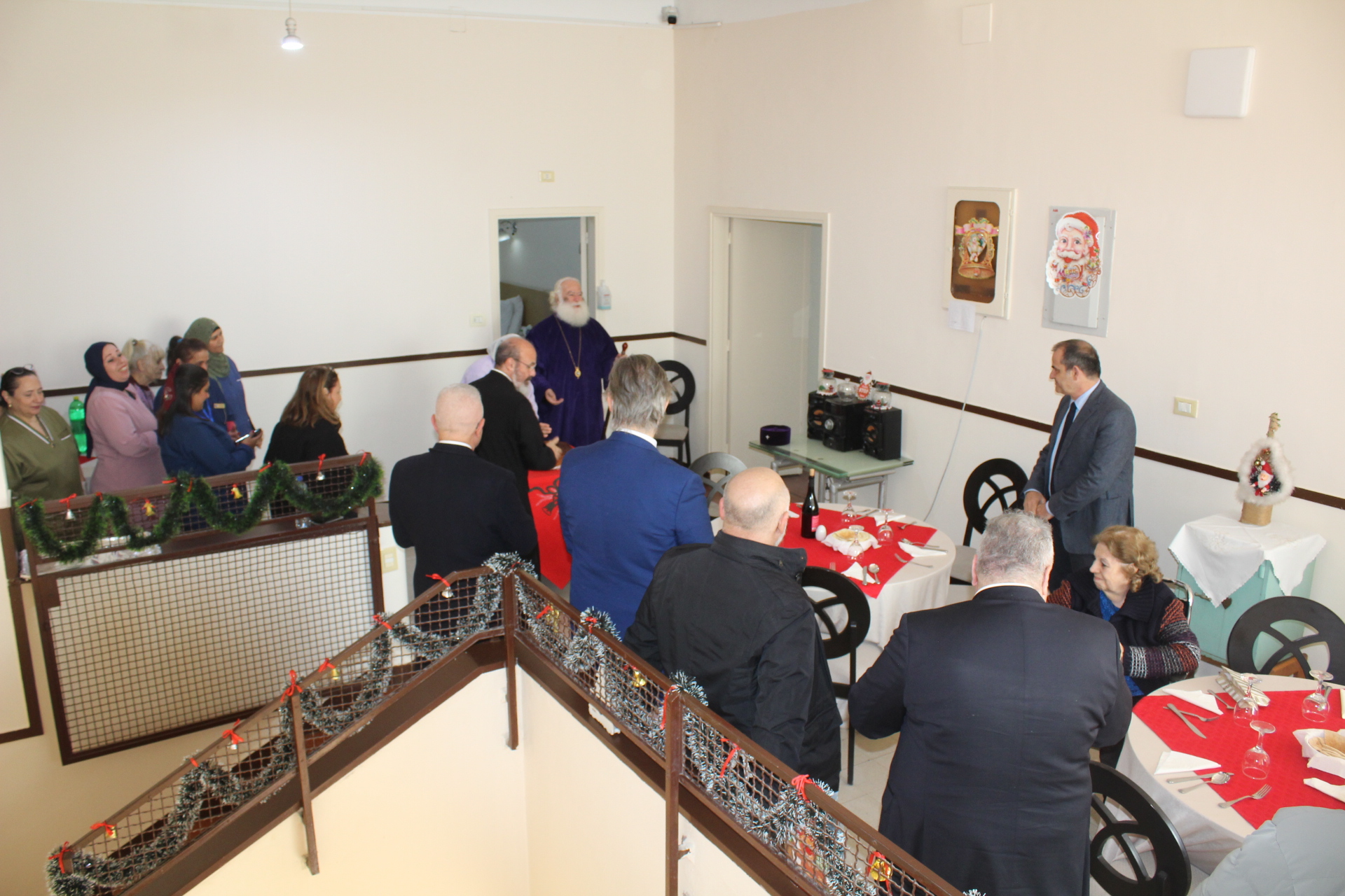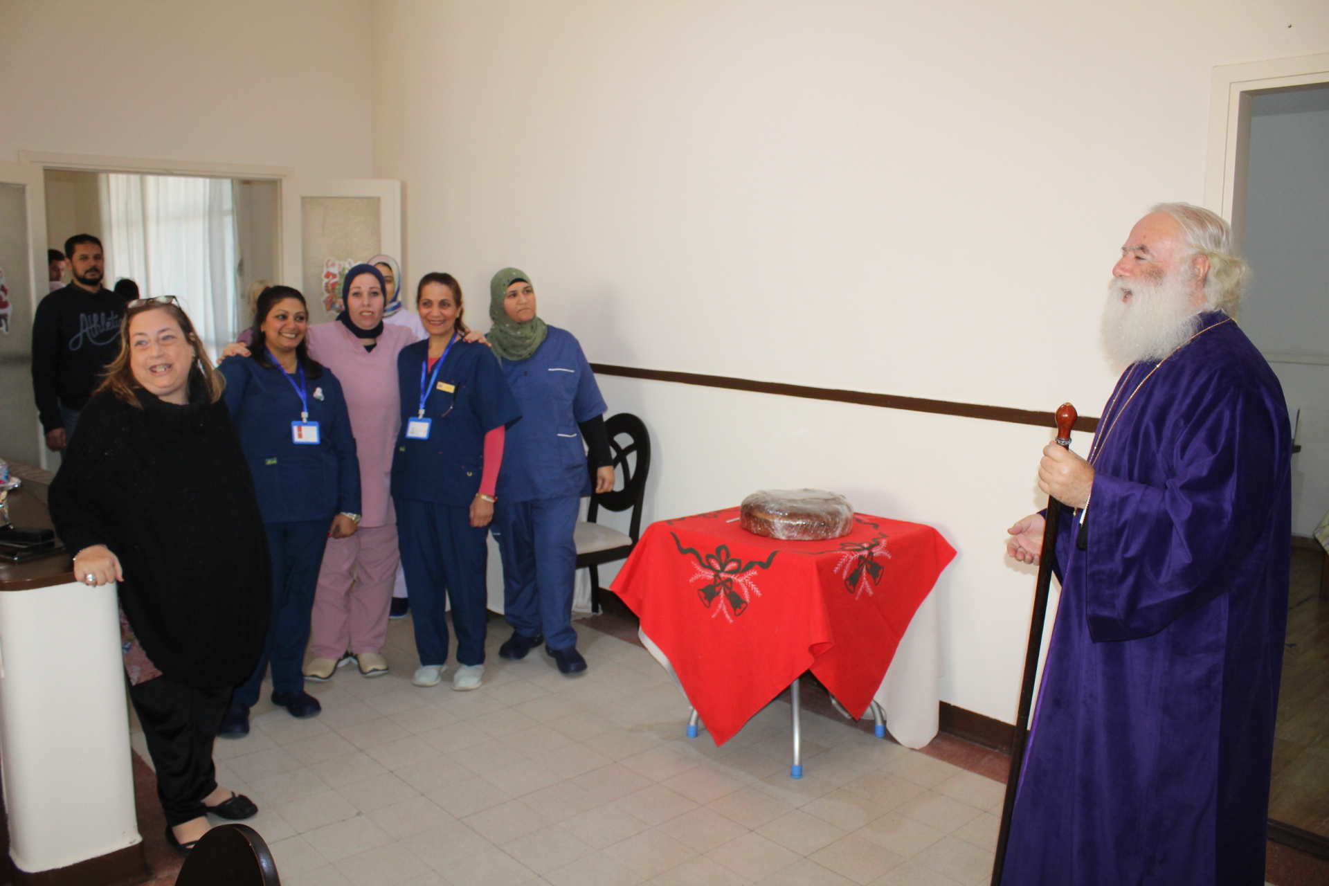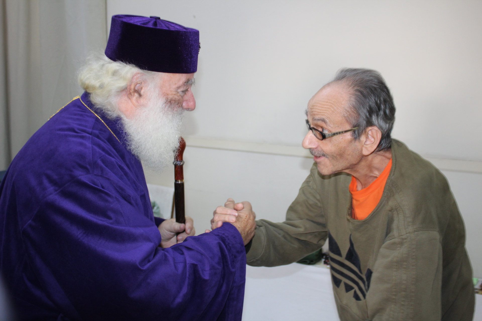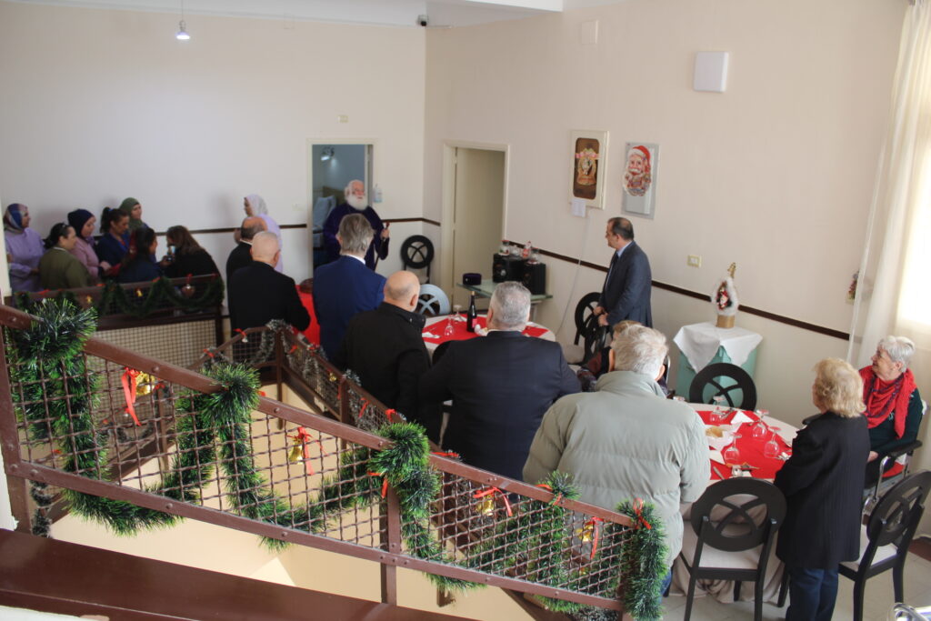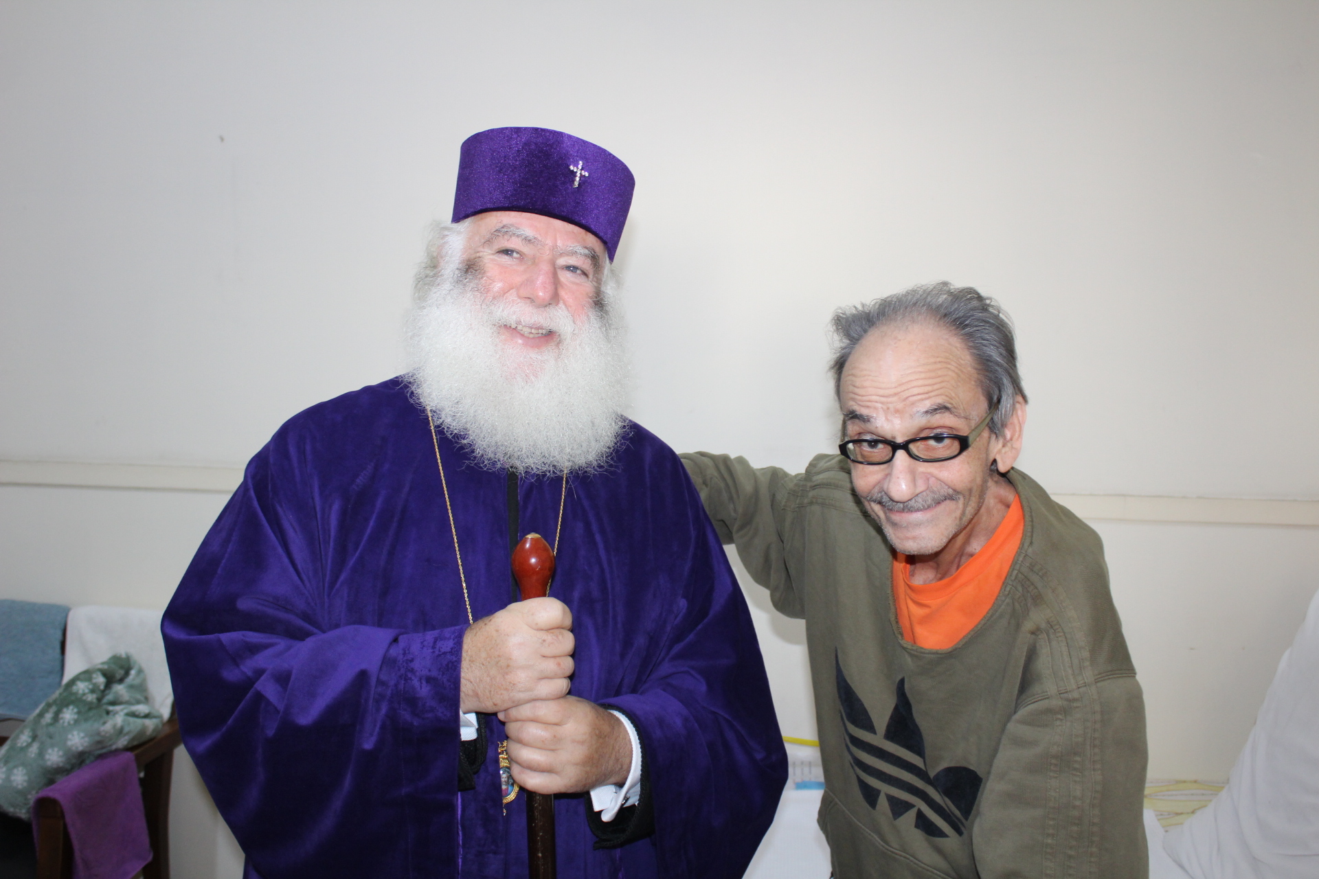 Όλοι μαζί ανέβηκαν στον Οίκο Ευγηρίας για να γευματίσουν μαζί με τους τροφίμους και το προσωπικό. Η Διευθύντρια του ΜΑΝΝΑ κα Αγγελική Νιάρου επί της υποδοχής μαζί με τον ιατρό κ. Μέτχαντ Σόκαρ, το προσωπικό και τους τροφίμους που είχαν πάρει τη θέση τους στα τραπέζια, πήραν την ευλογία του Μακαριωτάτου και στη συνέχεια ο Ιεράρχης της Ορθοδοξίας επισκέφθηκε όλους τους θαλάμους για να χαιρετήσει τους πλέον αδύναμους ηλικιωμένους που αδυνατούσαν να καθίσουν στο σαλόνι.