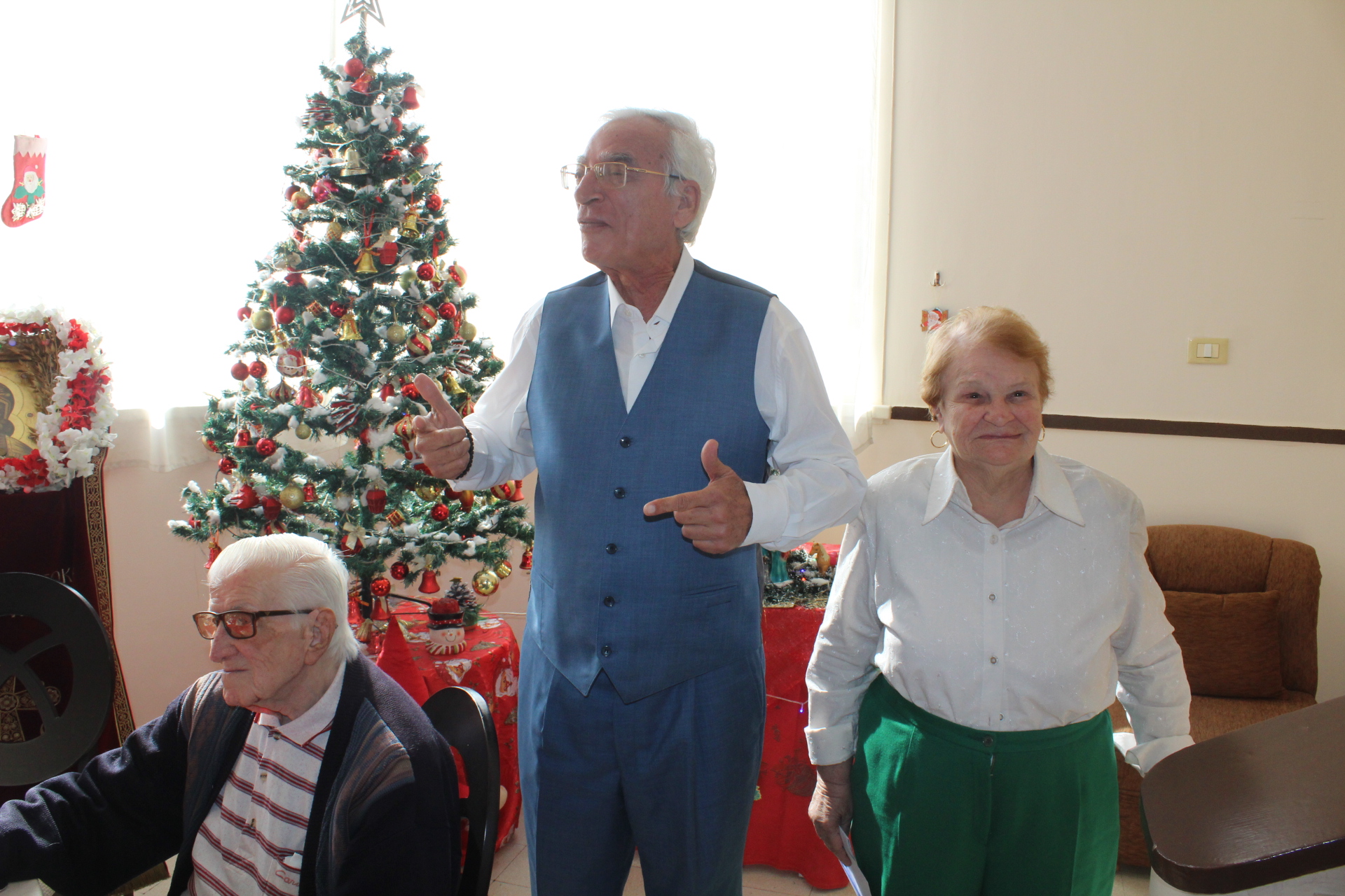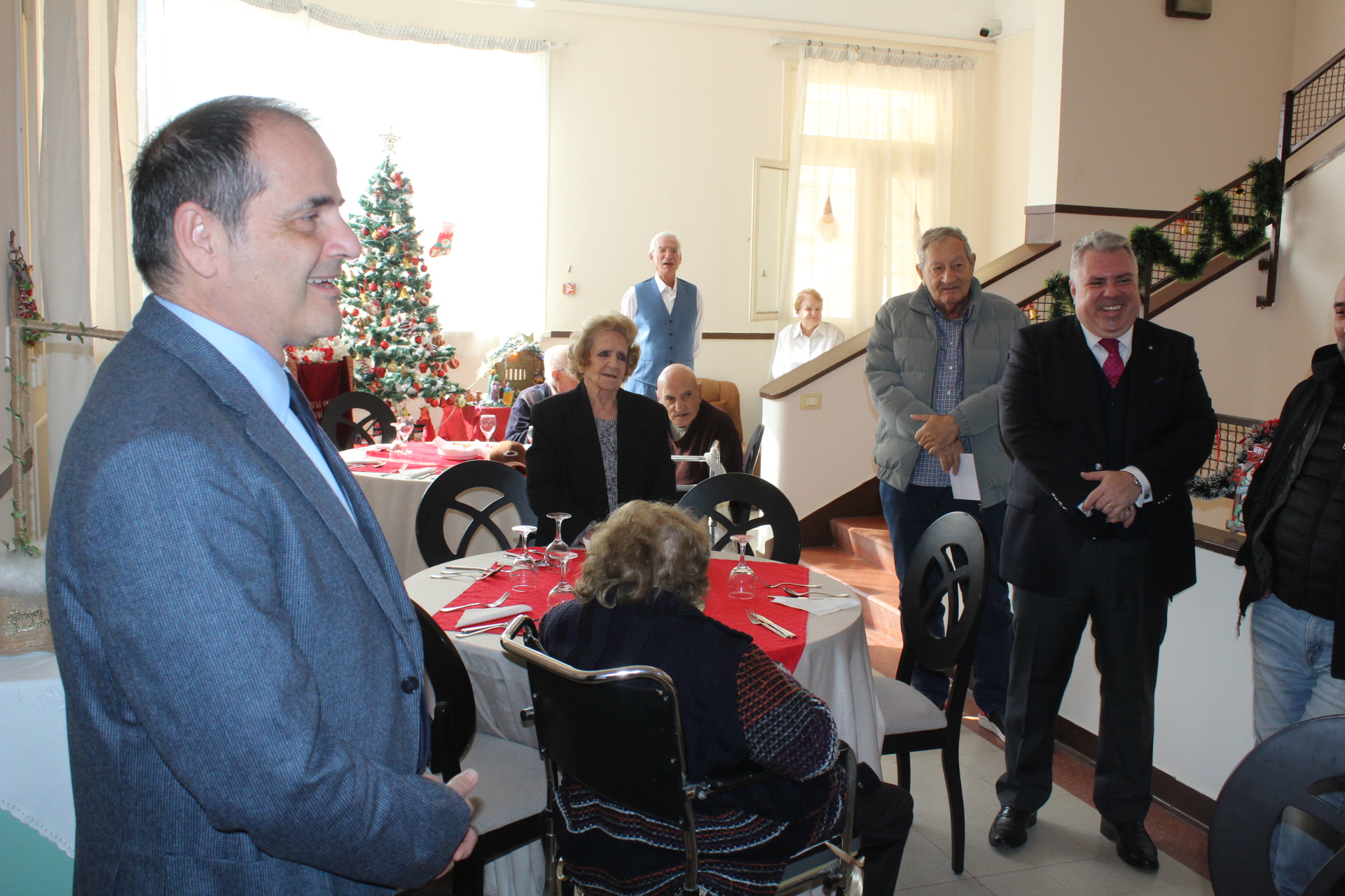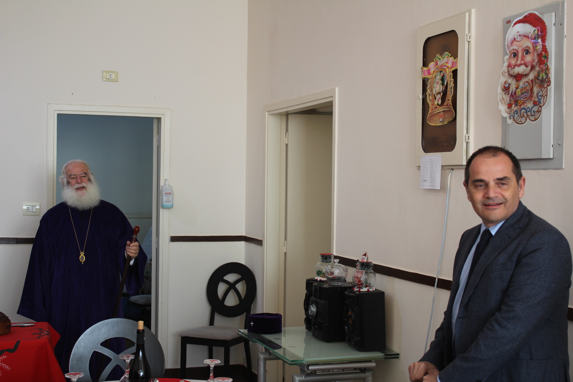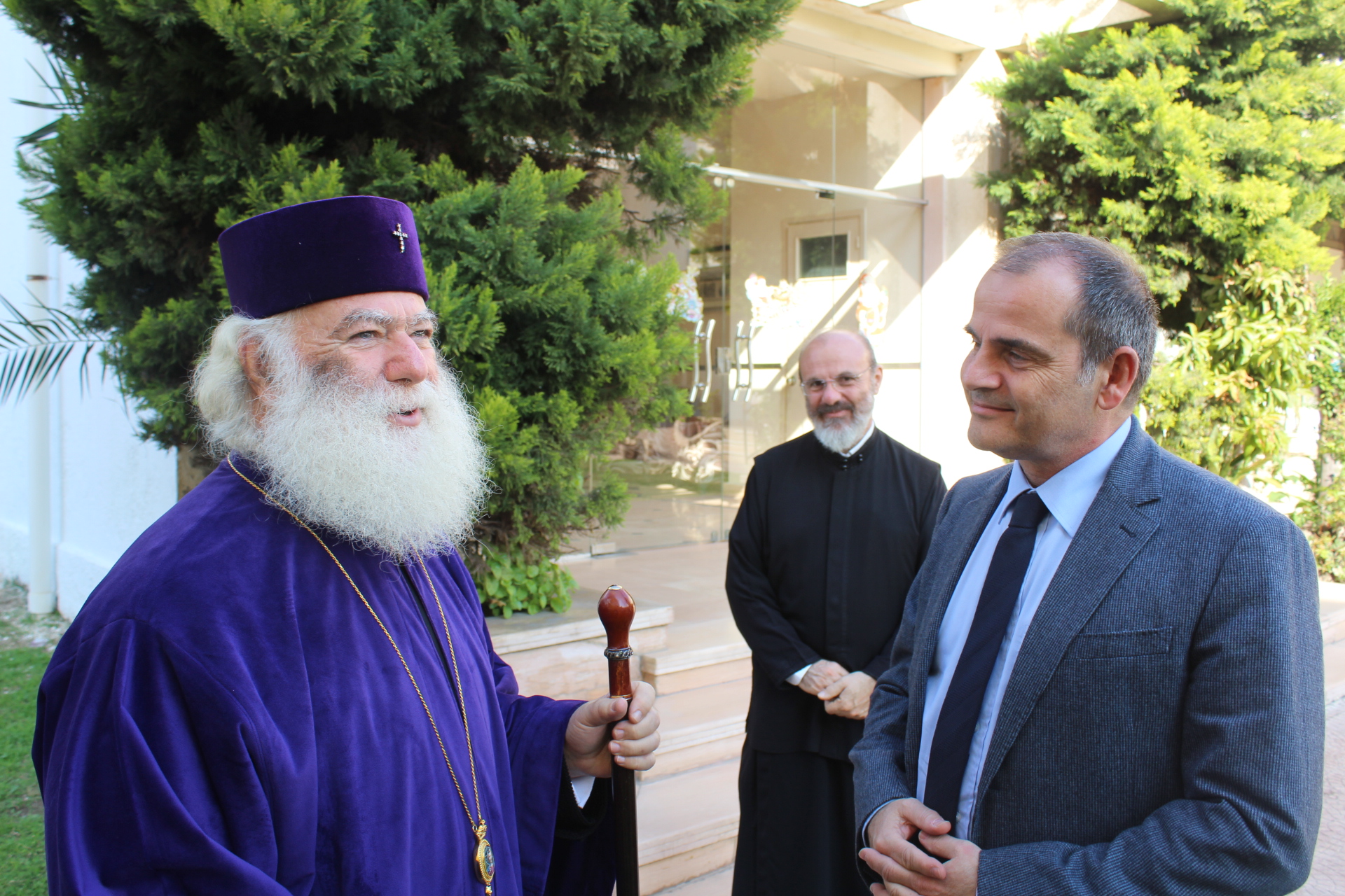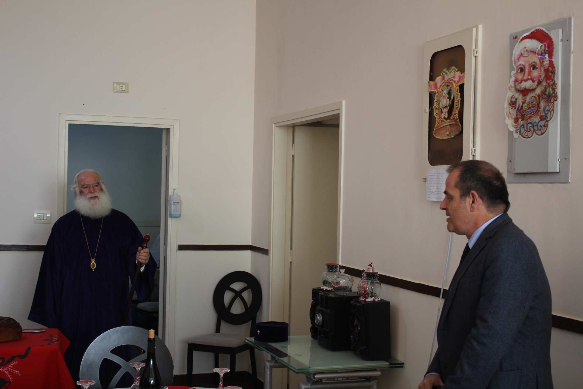 Όλοι μαζί ανέβηκαν στον Οίκο Ευγηρίας για να γευματίσουν μαζί με τους τροφίμους και το προσωπικό. Η Διευθύντρια του ΜΑΝΝΑ κα Αγγελική Νιάρου επί της υποδοχής μαζί με τον ιατρό κ. Μέτχαντ Σόκαρ, το προσωπικό και τους τροφίμους που είχαν πάρει τη θέση τους στα τραπέζια, πήραν την ευλογία του Μακαριωτάτου και στη συνέχεια ο Ιεράρχης της Ορθοδοξίας επισκέφθηκε όλους τους θαλάμους για να χαιρετήσει τους πλέον αδύναμους ηλικιωμένους που αδυνατούσαν να καθίσουν στο σαλόνι.