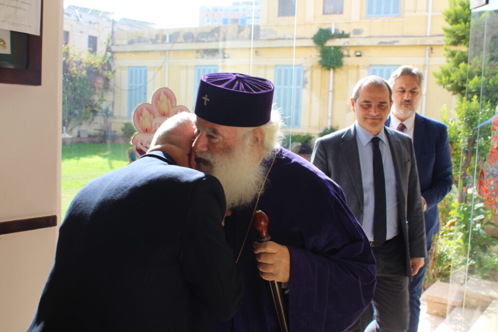 Ο Πατριάρχης μας, έφθασε έξω από το ΜΑΝΝΑ το μεσημέρι με τη συνοδεία του Σεβασμιωτάτου Μητροπολίτη Πηλουσίου κ. Ναρκίσσου Πατριαρχικού Επτρόπου, όπου εκεί τον ανέμεναν ο Γενικός Πρόξενος της Ελλάδας στη Αλεξάνδρεια κ. Ιωάννης Πυργάκης και οι «οικοδεσπότες»: ο Πρόεδρος της Ελληνικής Κοινότητας Αλεξανδρείας κ. Ανδρέας Βαφειάδης, ο Γενικός Γραμματέας κ. Νικόλαος Κατσιμπρής και ο Κοινοτικός Επίτροπος κ. Βασίλειος Ζουές.
