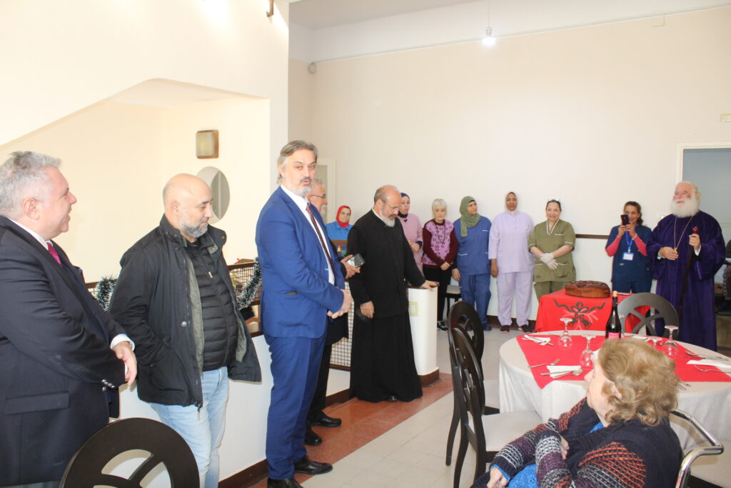 Ομίλησε με αγάπη και νοιάξιμο για τους συμπαροίκους μας που διαβιούν στον Οίκο Ευγηρίας και στη συνέχεια ο λόγος εδόθη στον Γενικό Πρόξενο, ο οποίος απηύθυνε τις ευχές του και τα χρόνια πολλά προς όλους. Ολοκλήρωσε ο Πρόεδρος της ΕΚΑ με τα δικά του λόγια ευχών περί καλής χρονιάς, αλλά τόνισε και την ιδιαίτερη συγκίνησή του για την σπουδαία πράξη του Πατριάρχη Αλεξανδρείας, να στηρίξει το εγχείρημα της αποκατάστασης των ζημιών του Ιερού Καθεδρικού Ναού του Ευαγγελισμού της Θεοτόκου.