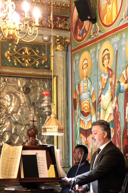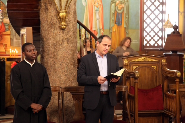 Η Θεία Λειτουργία τελέστηκε με ιδιαίτερη κατανυκτικότητα, χοροστατούντος του Πάπα και Πατριάρχη Αλεξανδρείας και πάσης Αφρικής κ.κ. Θεοδώρου Β’ και συλλειτουργούντος του Θεοφιλέστατου Επισκόπου Ταμιάθεως κ. Γερμανού, Προϊσταμένου της ανωτέρω Ιεράς Μονής και ιερέων του Πατριαρχικού Θρόνου. Ο Γενικός Πρόξενος της Ελλάδας στην Αλεξάνδρεια, κ. Ιωάννης Πυργάκης απέδωσε τους θείους βυζαντινούς ύμνους με την αρωγή του ιεροψάλτη Ιωάννη Γενειατάκη και των μαθητών της Πατριαρχικής Σχολής Άγιος Αθανάσιος.