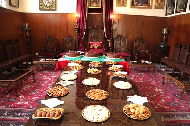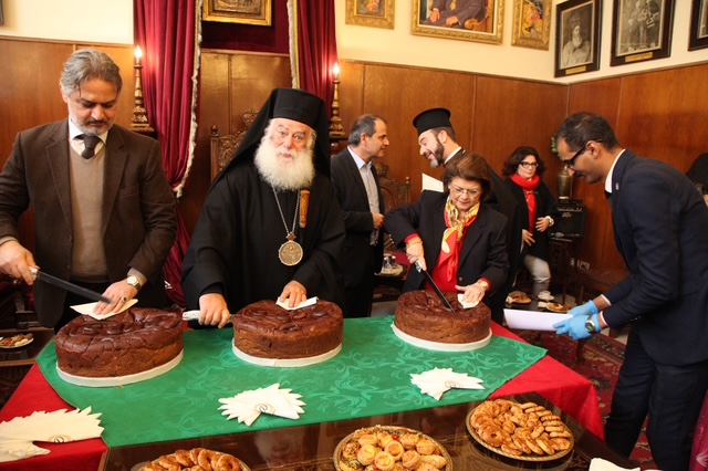 Μετά το πέρας της Λειτουργίας, οι παρευρισκόμενοι, μεταφέρθηκαν στο Αρχονταρίκι της Μονής. Εκεί, μέσα σε ευχάριστο και εορταστικό κλίμα, ο Μακαριώτατος ευλόγησε την Βασιλόπιτα και έκοψε το πρώτο κομμάτι, ευχόμενος υγεία, ευημερία και πρόοδο σε όλους. Ακολούθησε η Πρόεδρος του Λυκείου Ελληνίδων κα Αλίκη Αντωνίου, ο Γενικός Πρόξενος κ. Ιωάννης Πυργάκης και ο Πρόεδρος της Ελληνικής Κοινότητας κ. Ανδρέας Βαφειάδης. Την Κοπή της Βασιλόπιτας τίμησε με την παρουσία του και ο Σεβασμιώτατος Μητροπολίτης Πτολεμαΐδος κ. Παντελεήμονας Αρχιγραμματέας της Ιεράς Συνόδου.