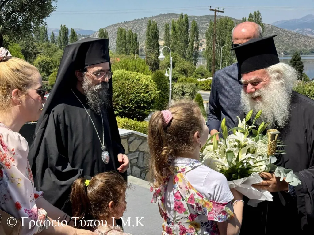 Ο οικείος Μητροπολίτης κ. Καλλίνικος καλωσόρισε τον Μακαριώτατο Προκαθήμενο και την τιμία συνοδεία του στην ακριτική και ευλογημένη επαρχία της Καστοριάς, και ως ενθύμιο της επισκέψεως, του προσέφερε μία αγιογραφημένη εικόνα του τοπικού Αγίου Καλλινίκου Επισκόπου Εδέσσης.