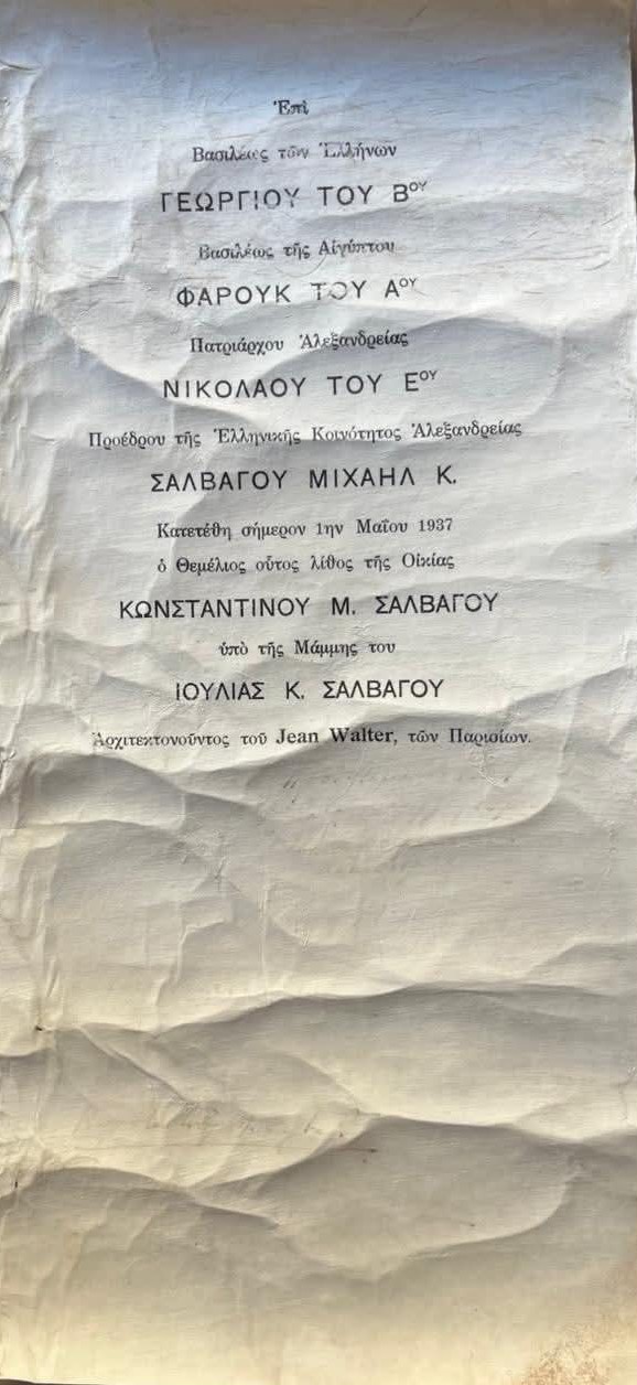 Η Ελληνική Κοινότητα Αλεξανδρείας, συγχαίρει τις Αιγυπτιακές Αρχές Πολιτισμού, για την σπουδαία ανακάλυψη που συνδέεται με το παρελθόν της οικογένειας Σαλβάγου και την ένδοξη εποχή των Αιγυπτιωτών Αλεξανδρείας!