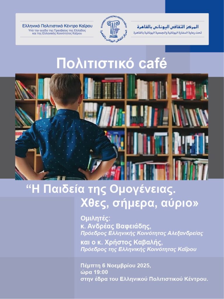 Ένα ιδιαίτερα επίκαιρο θέμα πρόκειται να συζητηθεί, να αναλυθεί και μέσω του διαλόγου, να αποφέρει οφέλη για την σύγχρονη Παροικία των Αιγυπτιωτών, στην έδρα του Ελληνικού Πολιτιστικού Κέντρου Καΐρου.