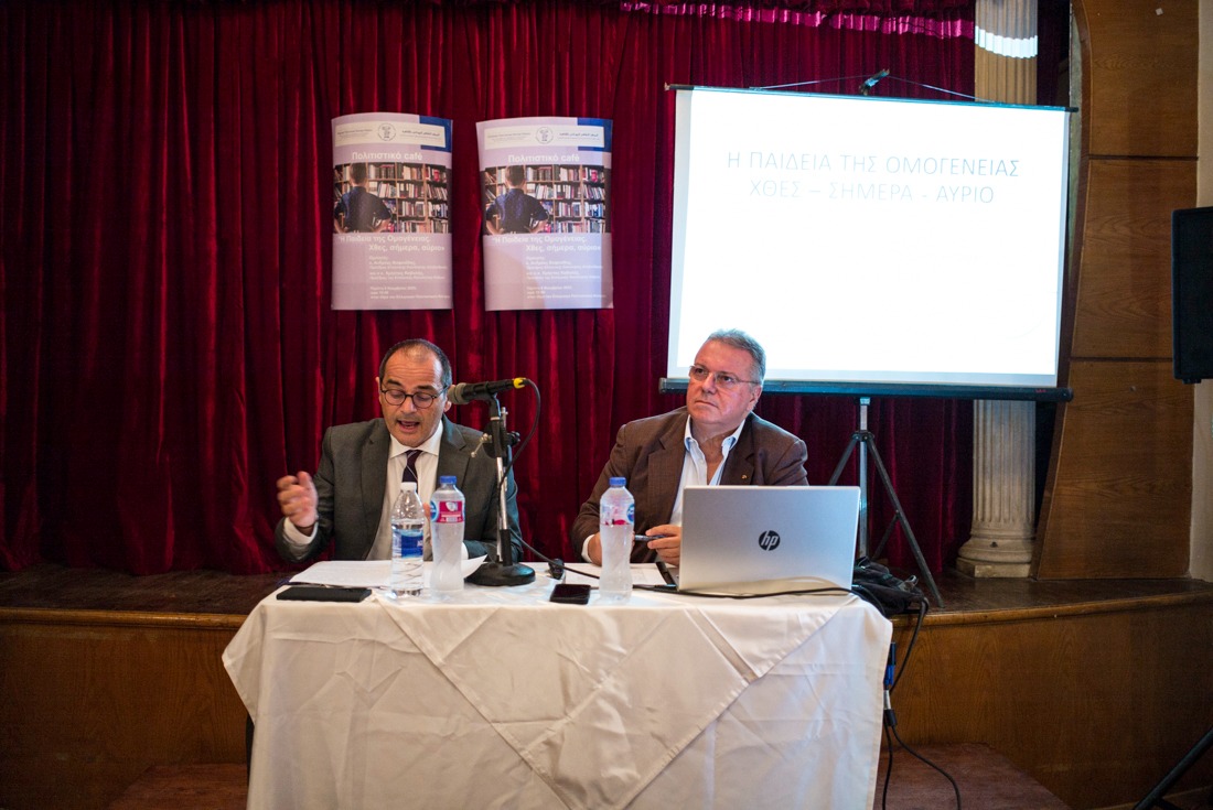 Ο κ. Ανδρέας Βαφειάδης της ΕΚΑ και ο κ. Χρήστος Καβαλής, πραγματοποίησαν εξαιρετικές ομιλίες μέσω των οποίων αποκτήθηκε ιδιαίτερη γνώση, που σχετίζεται άμεσα με τον τρισδιάστατο χρόνο που διαγράφει η πορεία της ελληνόφωνης παιδείας στη χώρα του Νείλου.