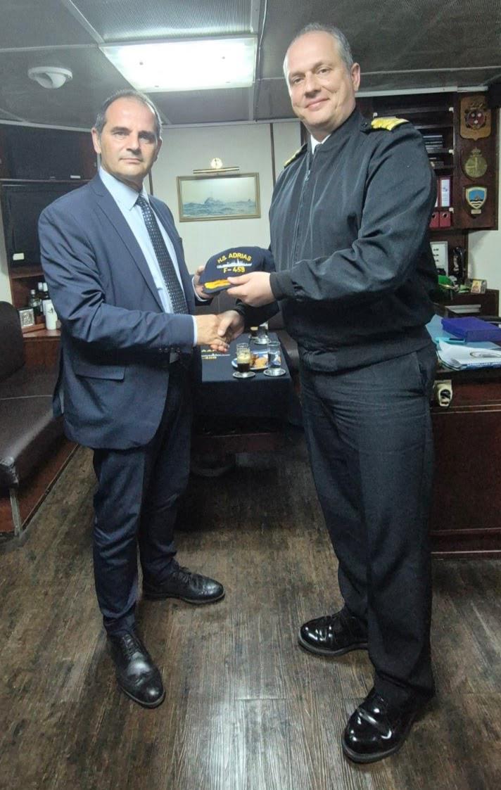 Τους υποδέχθηκαν ο Πλοίαρχος Βασίλειος Σταθούλιας, Διοικητής 2ης Μοίρας Φρεγατών, ο