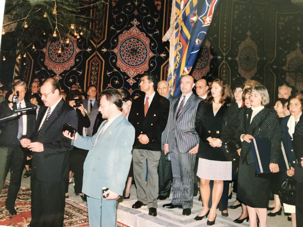 Φωτογραφία κατά την επίσημη επίσκεψη του Οικουμενικού Πατριάρχη, στην Αλεξάνδρεια, με αφορμή να συγχαρεί τον νεοεκλεγέντα Πατριάρχη Αλεξανδρείας, αείμνηστο Πέτρο Ζ. Δεξιά στη φωτογραφία διακρίνεται η Σούλα Ζουέ, με κλειστά μάτια, μαύρη φούστα, κρατώντας το δώρο της ΕΚΑ, το οποίο θα προσέφερα μετά το πέρας του καλωσορίσματος μου.