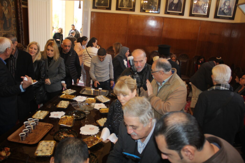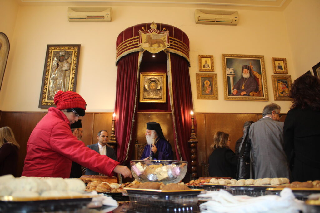 Το τραπέζι γεμάτο καλούδια, μαζί με τρεις μεγάλες πίτες ανέμεναν να γλυκάνουν τους ουρανίσκους των παρευρισκομένων, οι οποίοι ακολουθώντας την προτροπή του Μακαριωτάτου και ενημερωμένοι από την ανακοίνωση του Λυκείου Ελληνίδων, έδιναν το παρών τους για να τιμήσουν την Πρόεδρό του και τα Μέλη του ανωτέρω αλεξανδρινού Παραρτήματος.