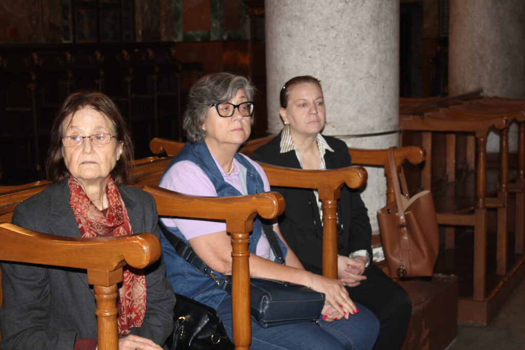 Οι δύο καλλικέλαδοι ιεροψάλτες, ο Γενικός Πρόξενος κ. Ιωάννης Πυργάκης που προσφέρει τα μάλα με τη διττή ιδιότητα διπλωμάτη και ιεροψάλτη και ο έτερος εκφραστής της βυζαντινής μελωδίας και συνάμα εκπαιδευτικός κ. Αλέξανδρος Μπάσης, απέδωσαν με φωνητική δεινότητα και ιερότητα το τελετουργικό του Ακάθιστου ύμνου!