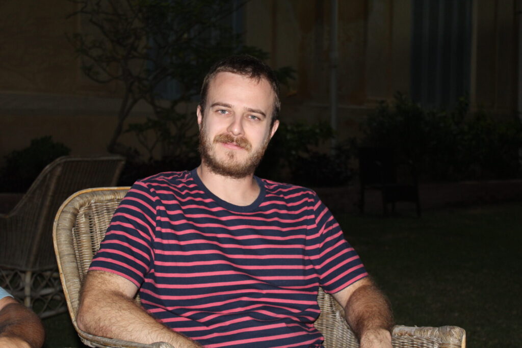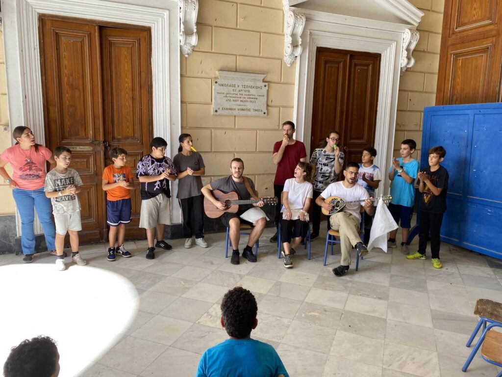 Έρχομαι για 3η φορά. Κάθε φορά είναι εμπειρία ζωής, που νοηματοδοτεί και την καθημερινότητα με κάποιο τρόπο. Αυτό που αφήνει μέσα μου, τόσο η εμπειρία με τα παιδιά του Ελληνικού Σχολείου της Ελληνικής Κοινότητας, όσο και η εμπειρία της Αλεξάνδρειας σαν περιοχή, με δεδομένο τον Ελληνισμό και πως εμείς αλληλοεπιδρούμε με αυτόν, είναι μια εμπειρία που είναι πολύ δυνατή θα έλεγα. Είναι πάρα πολύ δυνατή και λόγω της απλότητάς της, δηλαδή με κάποιο τρόπο ερχόμαστε και αλληλοεπιδρούμε με τα παιδιά, απλώς παίζοντας. Παίζουμε μουσική χωρίς φανφάρες, χωρίς να παρέχουμε αυτά που ενδεχομένως θα αρέσανε στα παιδιά τη σημερινή εποχή. Τους βάζουμε σε άλλα κανάλια και το αφουγκράζονται αυτό τα παιδιά με μεγάλη χαρά και αυτό δίνει και σ΄ εμάς ικανοποίηση.